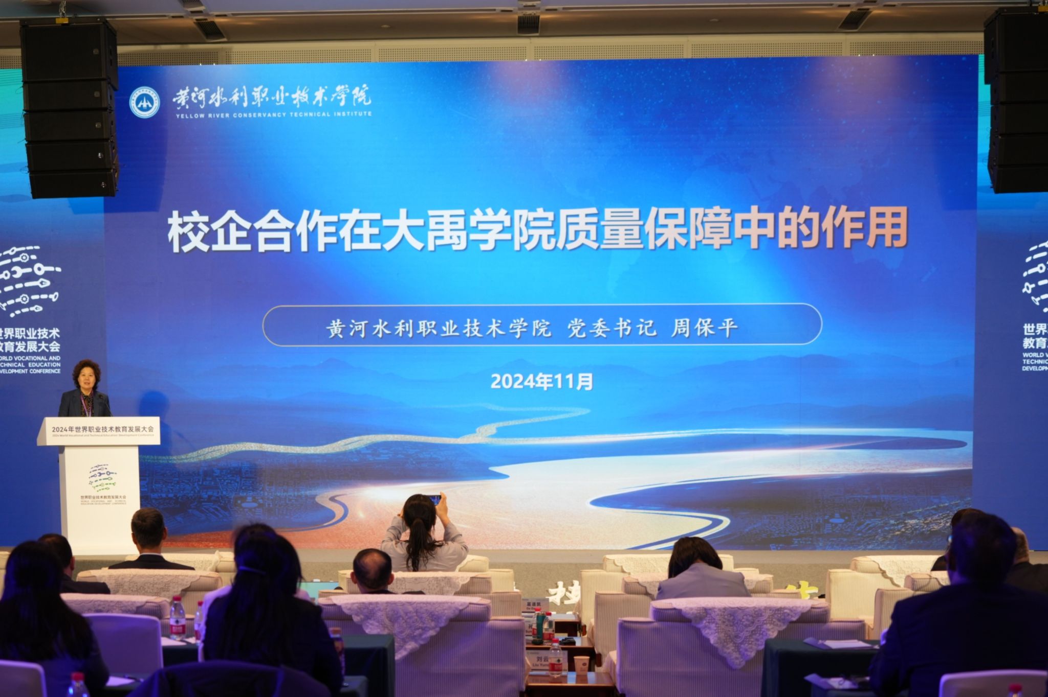 在“职业教育质量保障体系构建”论坛上,周保平以“校企合作在大禹学院质量保障中的作用”为题作报告,同与会的专家、学者就构建科学、完善、高效的职业教育质量保障体系进行深入研讨。她介绍了完美网页版国际化办学的发展历程,尤其是在校企共建大禹学院、协同保障国际化人才培养质量方面进行的探索和实践,包括建立健全标准体系、实施全过程管理和健全质量反馈机制等措施。她表示,完美网页版将继续深化校企合作,在国际化办学质量水平上形成周期性的持续改进,在质量保障体系上形成日趋完善的制度性安排,扎实走稳“随企出海”之路,为“一带一路”建设贡献职教智慧。