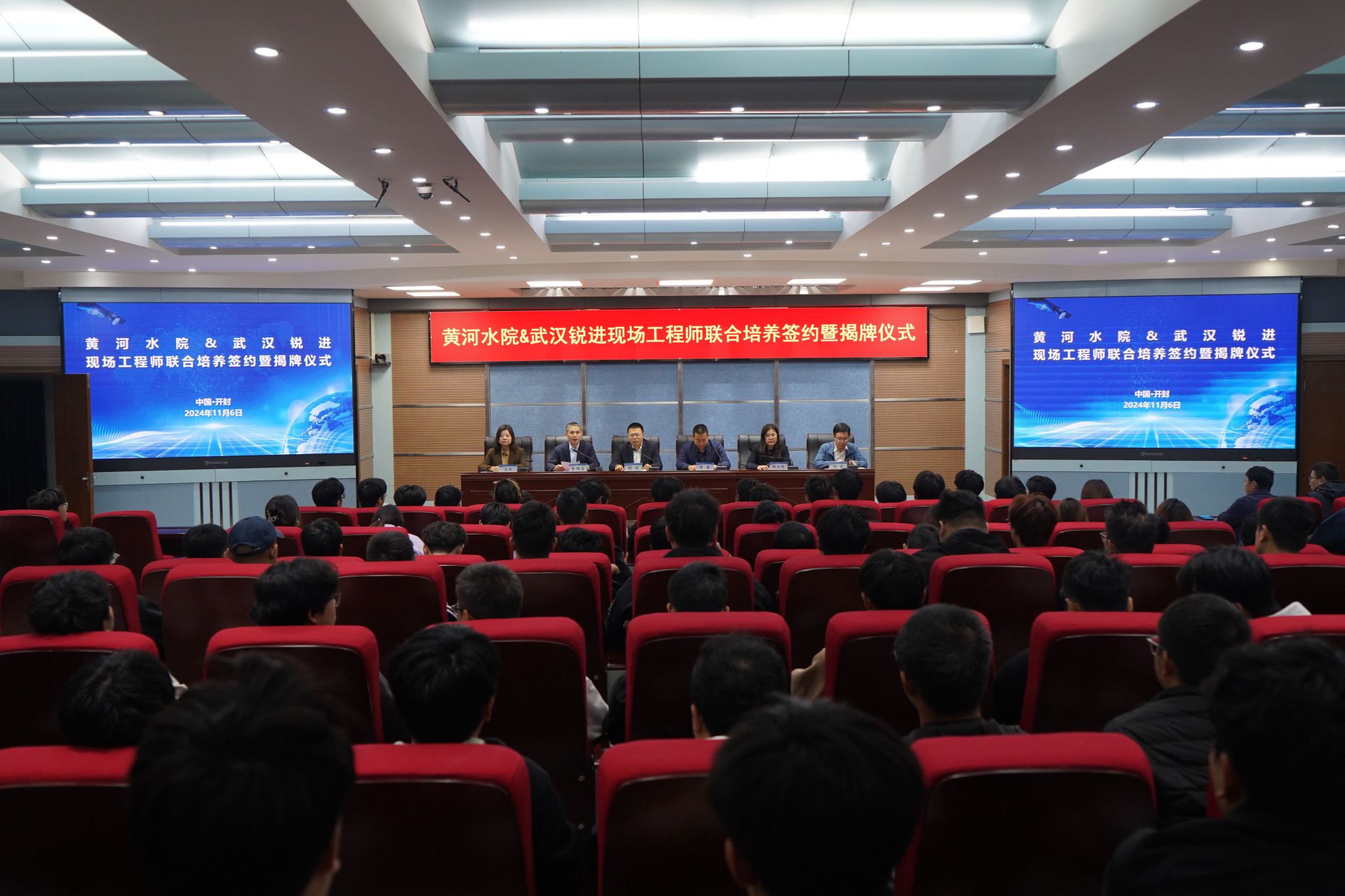 11月6日,我校与武汉锐进现场工程师联合培养签约暨揭牌仪式在3号实训馆学术报告厅举行。校党委副书记、校长胡昊,武汉锐进铁路科技股份有限公司董事长张鑫,副校长朱焕立出席揭牌仪式。教务处、测绘工程学院相关部门负责人及师生代表参加签约揭牌仪式。活动由朱焕立主持。