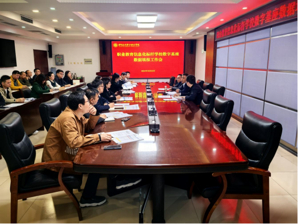 会上,曾赟传达了教育部职成司职业院校数字基座填报工作会议精神,分别从职业教育信息化标杆完美网页版申报工作、数字基座数据填报工作、新的数字基座高职数据标准及接口规范等方面进行解读,并对设置数据牵头部门和数据填报部门、填报数据的一致性要求和进一步加强信息化水平的必要性等方面工作做出了具体部署。