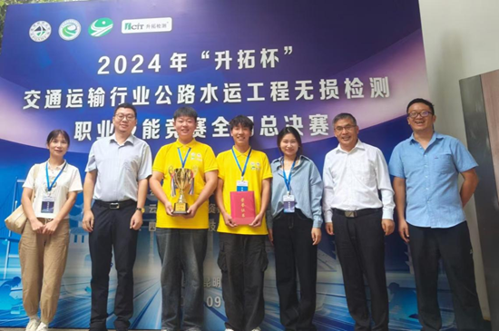匠心铸就成才梦想,技能创造出彩人生。9月20日至24日,2024年“升拓杯”交通运输行业公路水运工程无损检测职业技能竞赛全国总决赛在昆明成功举办。经过激烈角逐,我校由土木与交通工程学院的指导教师吕新娓、孟宪金,学生梁耀伟、张飒组成的参赛队荣获团体赛二等奖。