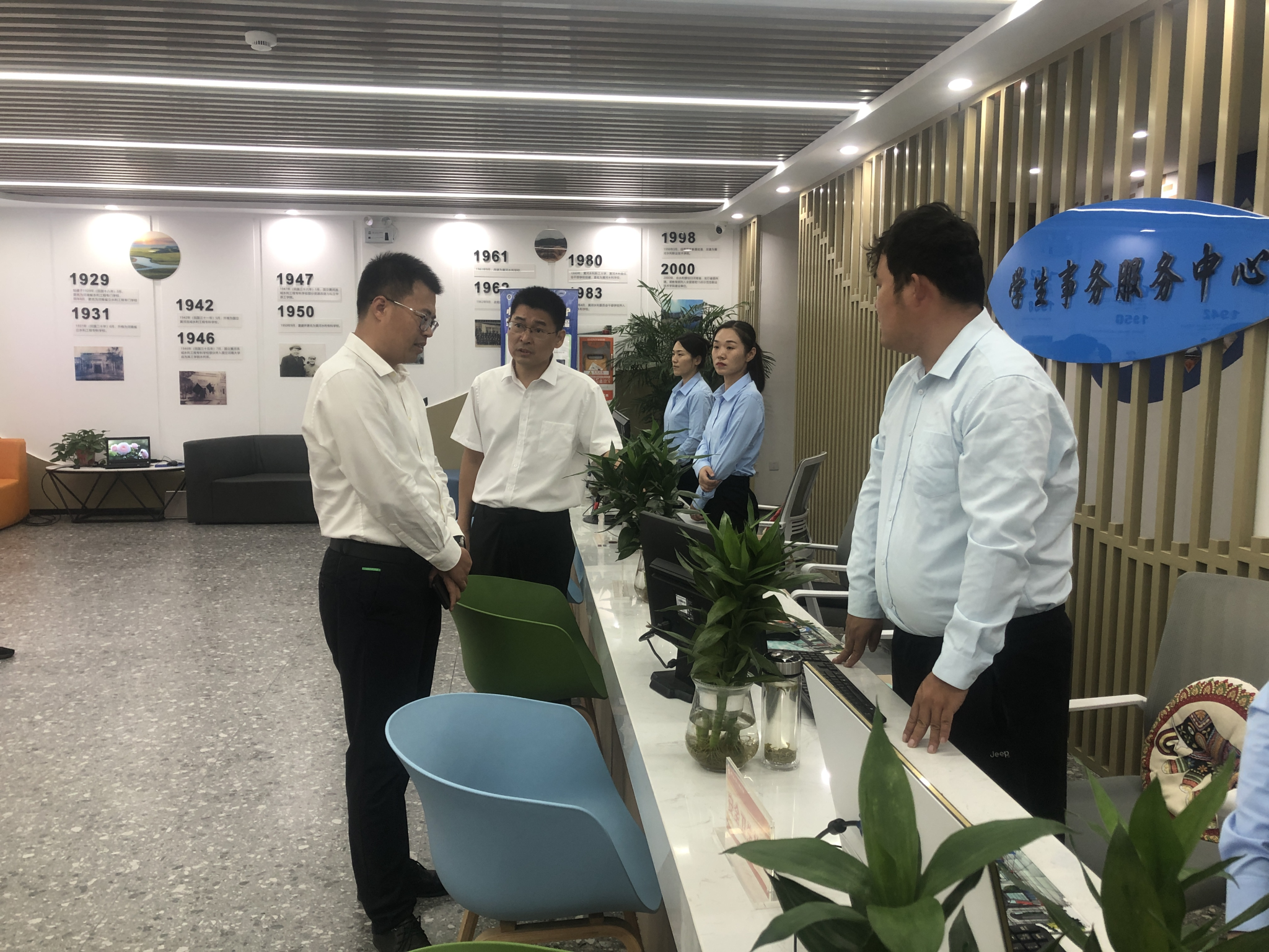 胡昊一行首先调研指导学生社区事务服务中心、心理辅导中心、名辅导员工作室等“一站式”学生社区功能区,与相关同志亲切交谈,了解线上线下的诉求即办、心理健康教育及辅导员成长发展情况,并就如何优化学生社区育人功能提出了要求。