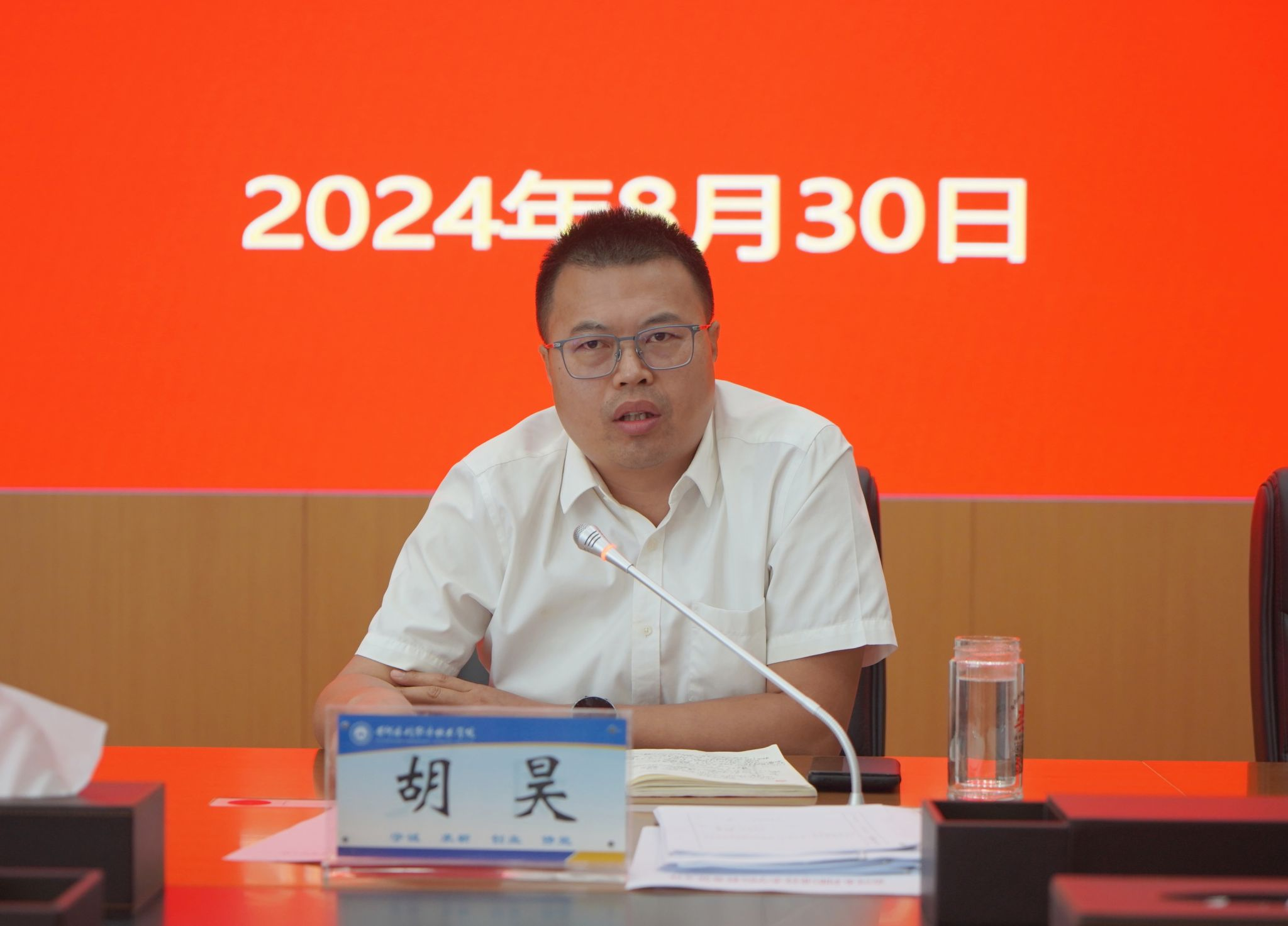 8月30日上午,我校在行政楼第五会议室召开期初教学及督导工作会,校党委副书记、校长胡昊,副校长朱焕立,纪委书记刘许亮出席会议。教务处、教育教学督导室及15个院(部)相关负责人,各办公室主任、基层教学组织负责人、专业带头人、督导专家等参会,会议由朱焕立主持。
