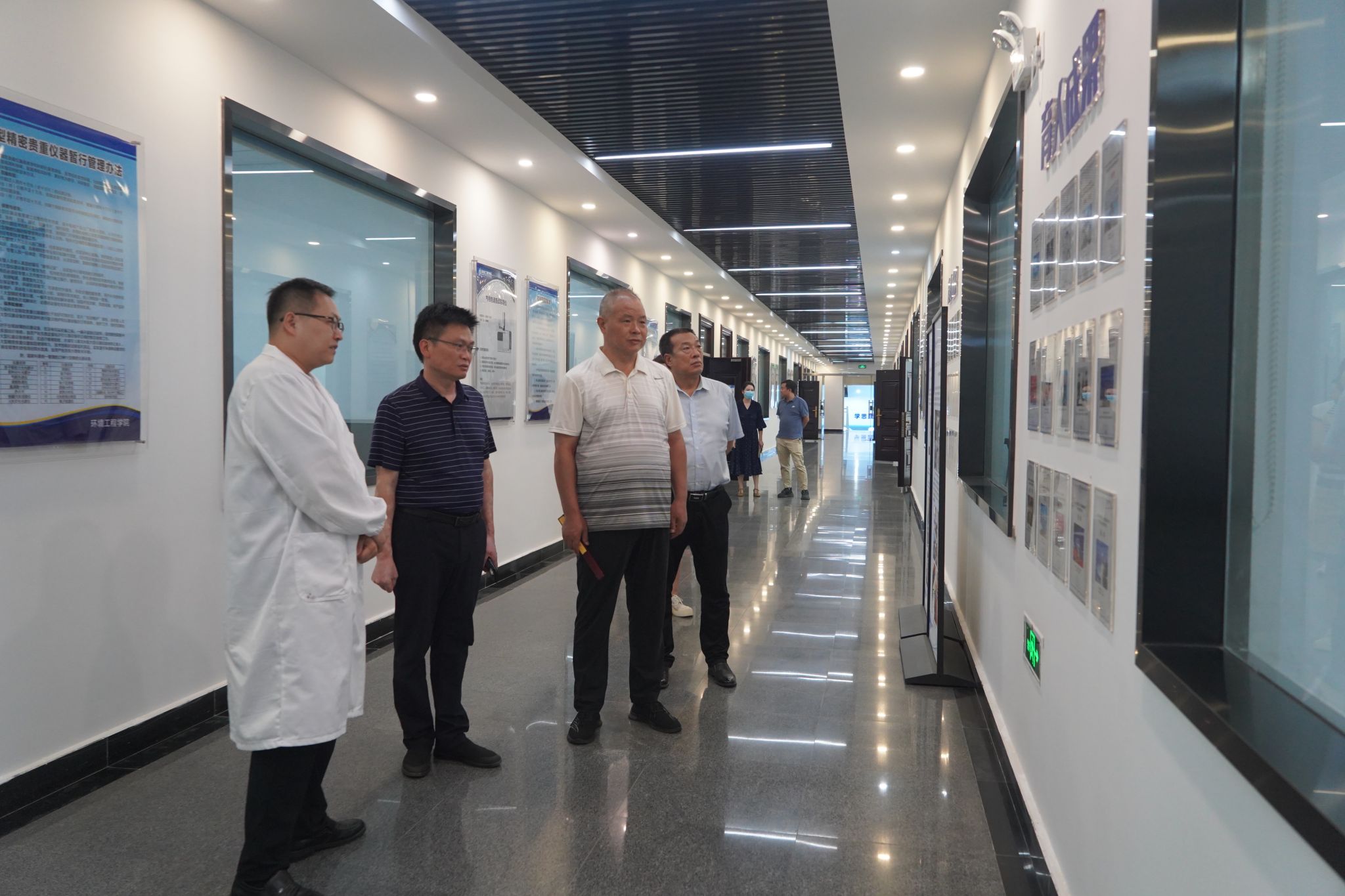 李楠远一行实地考察了我校环境工程学院实训馆、测绘工程学院实训馆、“足迹”文化景观、智慧校园服务大厅、鲲鹏山水利水电仿真实训基地、水利馆、机械工程学院智能制造实训中心、黄河工程文化长廊等场所。