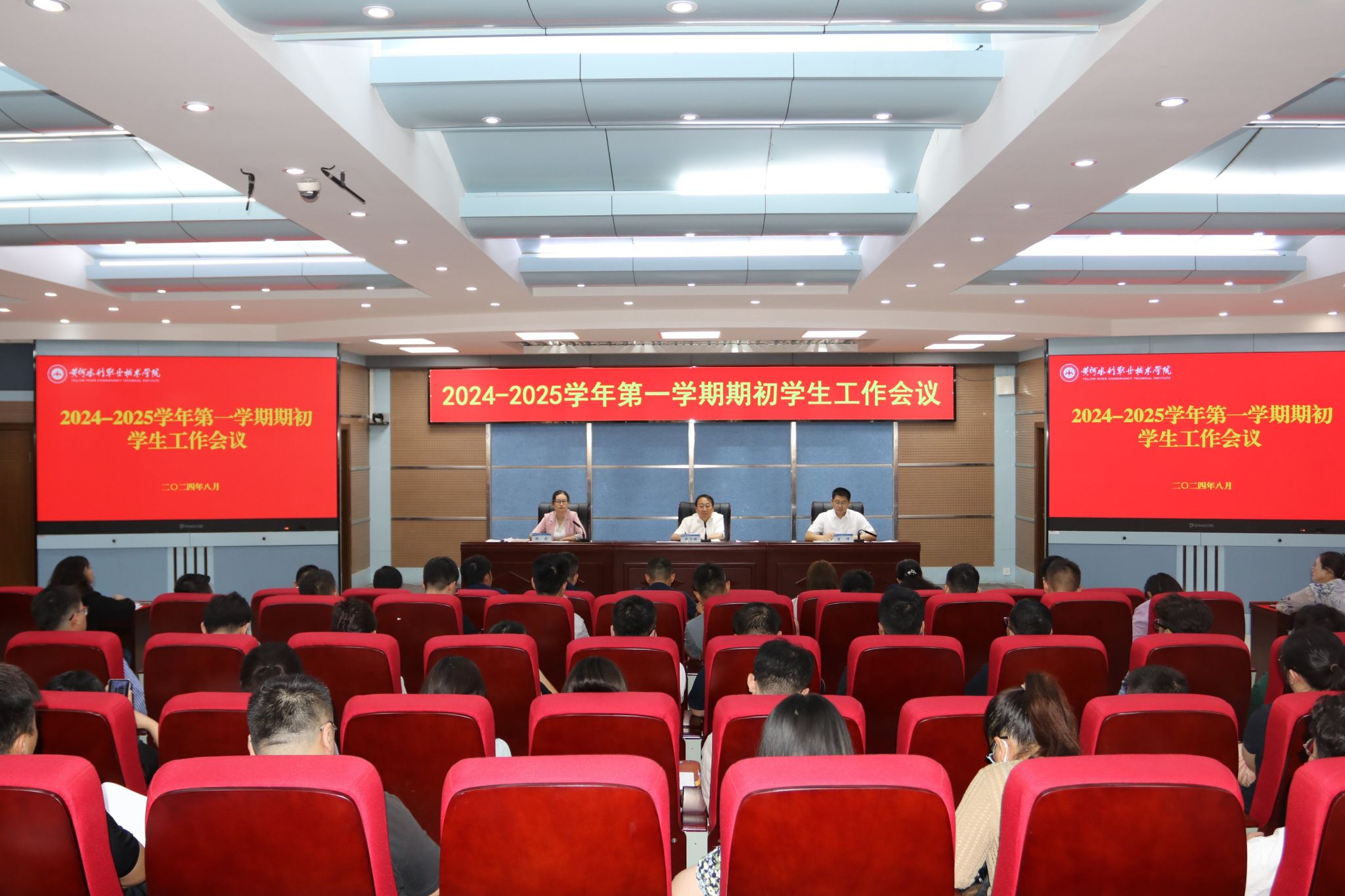 8月28日,我校在3号实训馆学术报告厅召开期初学生工作会议。副校长周志琦出席会议并讲话,学生工作部、“一站式”学生社区党工委全体人员,各学院党总支副书记以及全体辅导员参加会议。会议由“一站式”学生社区党工委书记魏蔚主持。