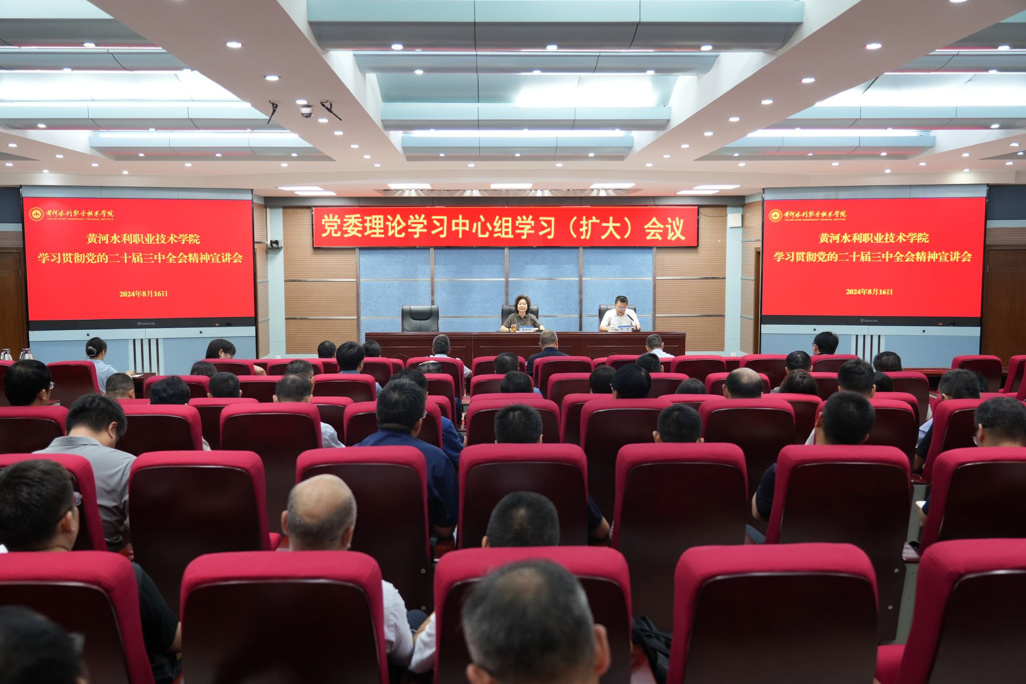 8月16日,我校在3号实训楼学术报告厅召开党委理论学习中心组专题学习(扩大)会,专题深入学习贯彻党的二十届三中全会精神。全体校领导、全体中层正职干部参加会议。会议由党副书记周保平主持。