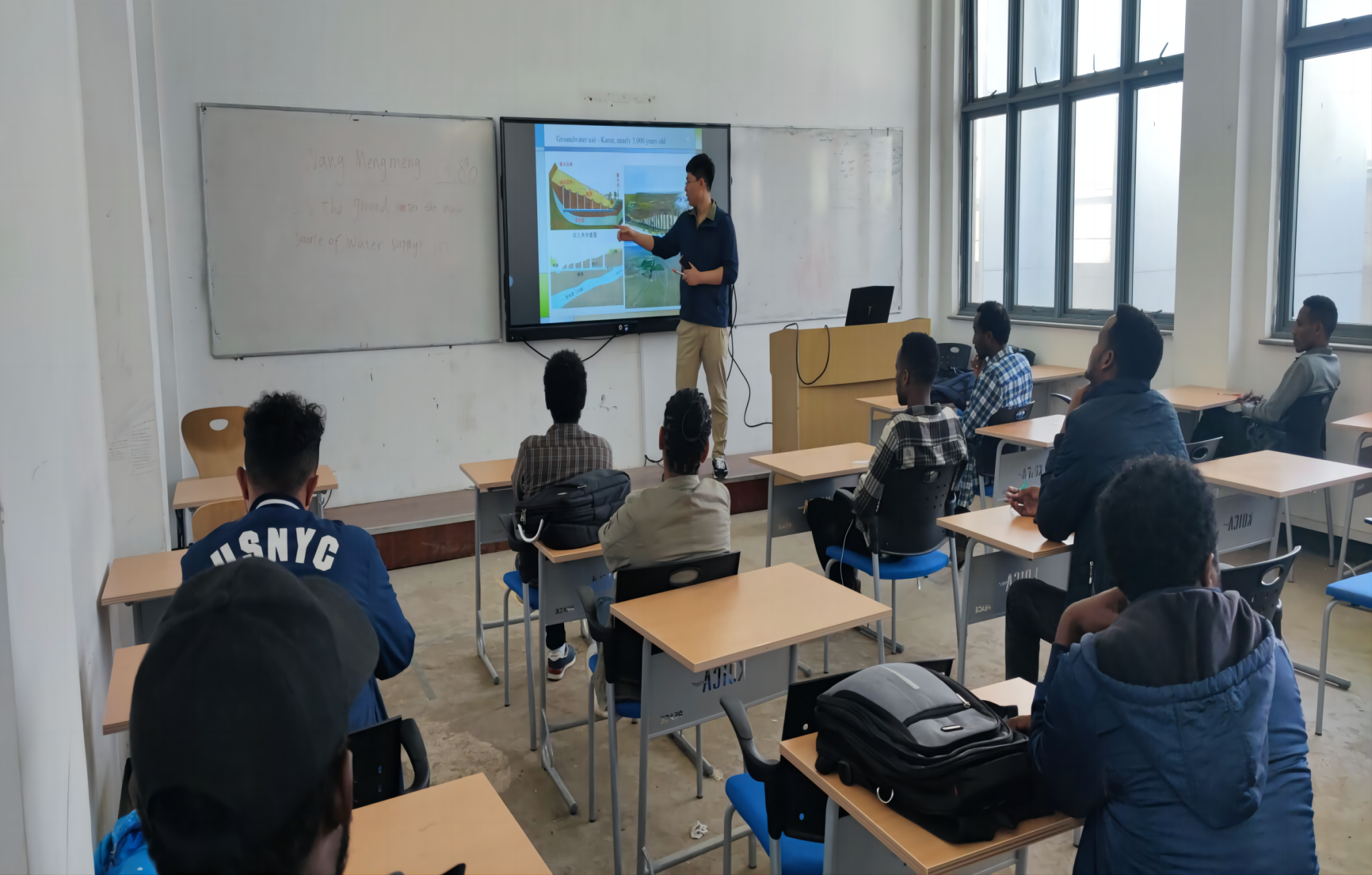 培训期间,王峰和王蒙蒙结合当地实际需求设计教学内容,开展了小型水电站设计与施工、泄漏检测与维修、现代集水技术、水泵与涡轮机等方面的培训。两位教师不仅教授理论知识和实践技能,还与当地师生进行深入交流,分享中国在水利水电领域的技术成果和成功经验,圆满完成既定工作任务,教学效果受到埃塞俄比亚劳动与技能部高度评价。