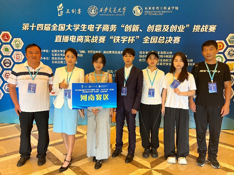 本届大赛,全国官网报名共计18万多支队伍,参赛团队创历史新高。创新创业学院和商务与管理学院高度重视此项大赛,通过校赛,选拔出两支队伍参加了“三创赛”河南赛区省级选拔赛,在“省赛”中,由杨威威、王芳芳、杜晗哲、金雅雯、吴汶墨组成的“专家团队”经过努力,最终以直播电商实战赛河南赛区第一名的优异成绩,荣获一等奖,挺进全国总决赛,同时荣获“最佳创新奖”“最佳创业奖”“最佳创意奖”三个单项奖,团队实力得到评委的高度评价。