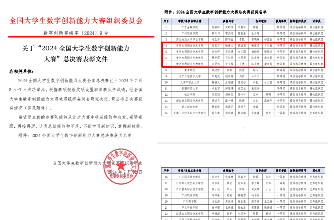 近日,由阿里巴巴(中国)网络技术有限公司、浙江中渤教育科技有限公司主办,浙江商业职业技术学院、浙江思睿智训科技有限公司承办的2024全国大学生数字创新能力大赛全国总决赛落下帷幕。我校商务与管理学院4个参赛代表队喜获佳绩,荣获特等奖4项,完美网页版荣获最佳组织奖,张歌凌、杨晓钦、陈永胜、文竹青等老师荣获最佳指导老师。