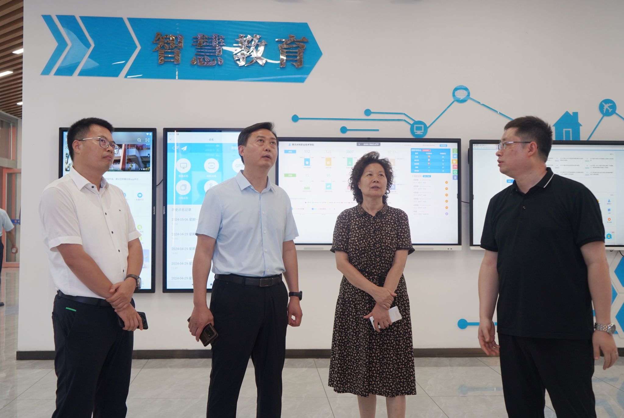 7月22日,河南省教育厅副厅长张国强带队到我校检查指导防汛工作,校党委书记周保平、校长胡昊参加调研。