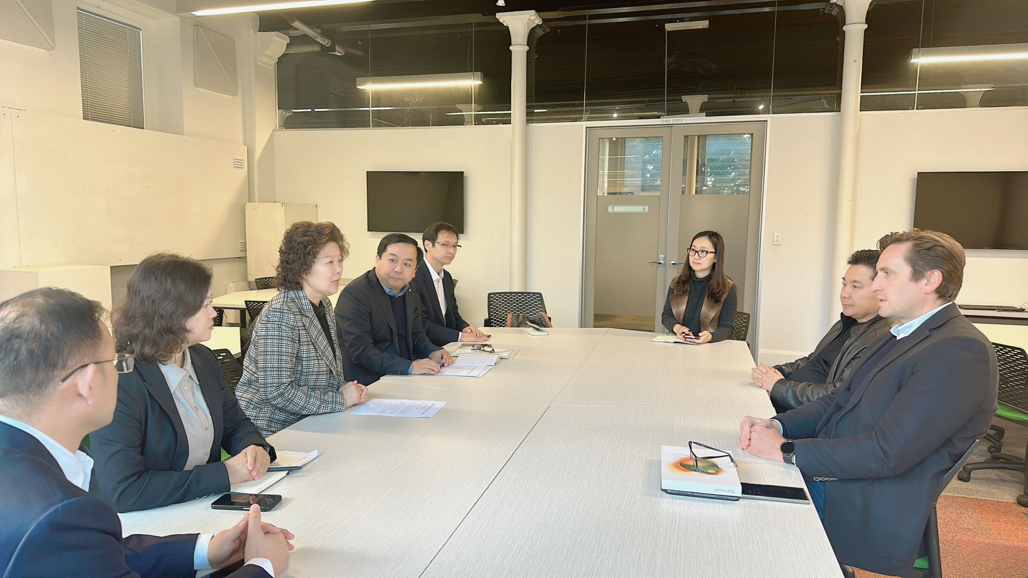 在UUNZ商学院,周保平一行与该校校长陈金明围绕商科专业职教合作和海外培训基地建设进行会谈。双方分别介绍了各自办学情况以及在商科领域开展的合作,并着重就我国职业院校建设海外培黎实训基地进行探讨。周保平表示,“职教出海”是我国职业教育发展的重要方向,我校已经在海外大禹学院建设方面做出了富有成效的探索,希望双方通过在新西兰搭建职教合作平台,进一步提升我国高职院校的国际影响力。