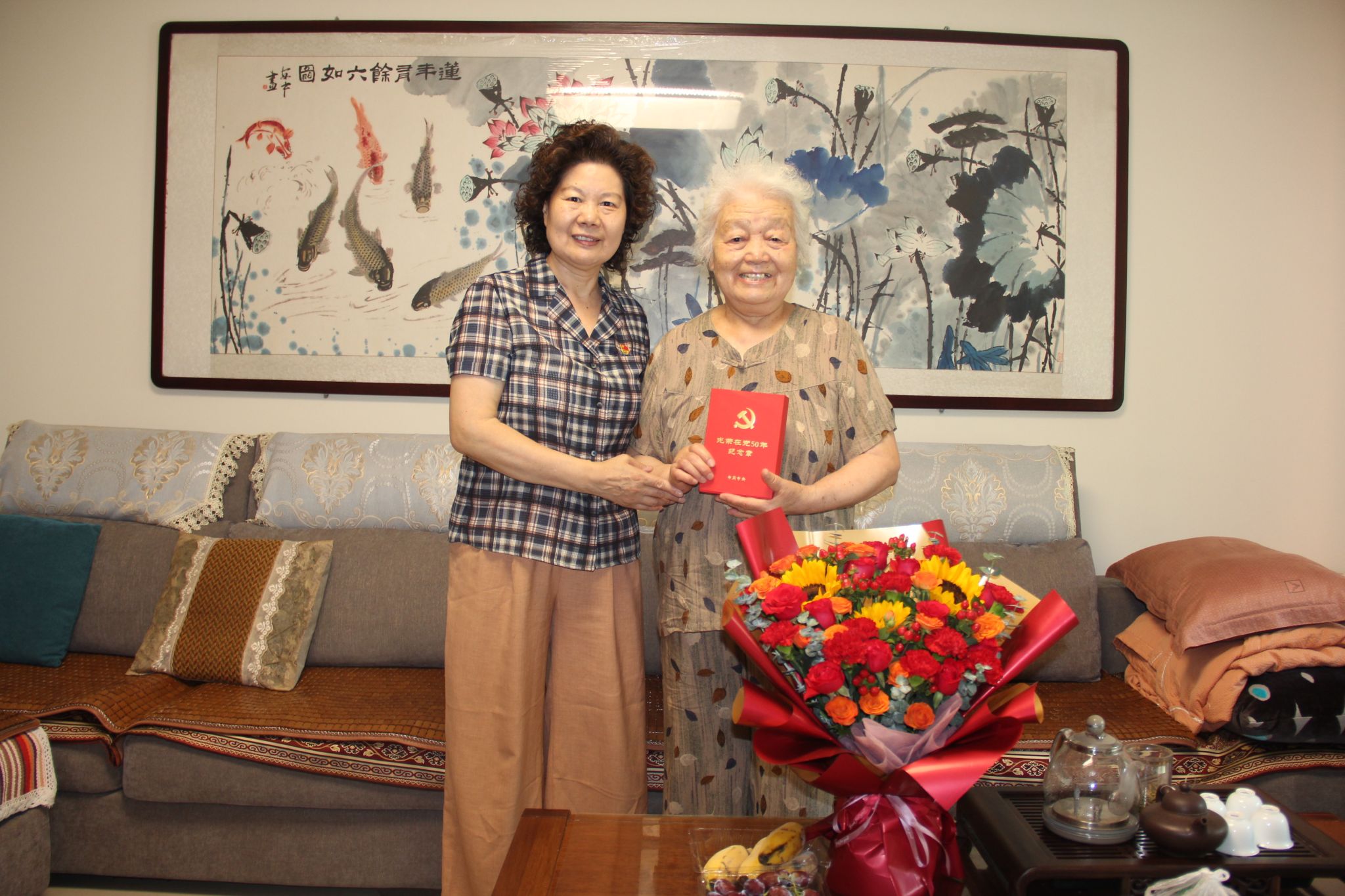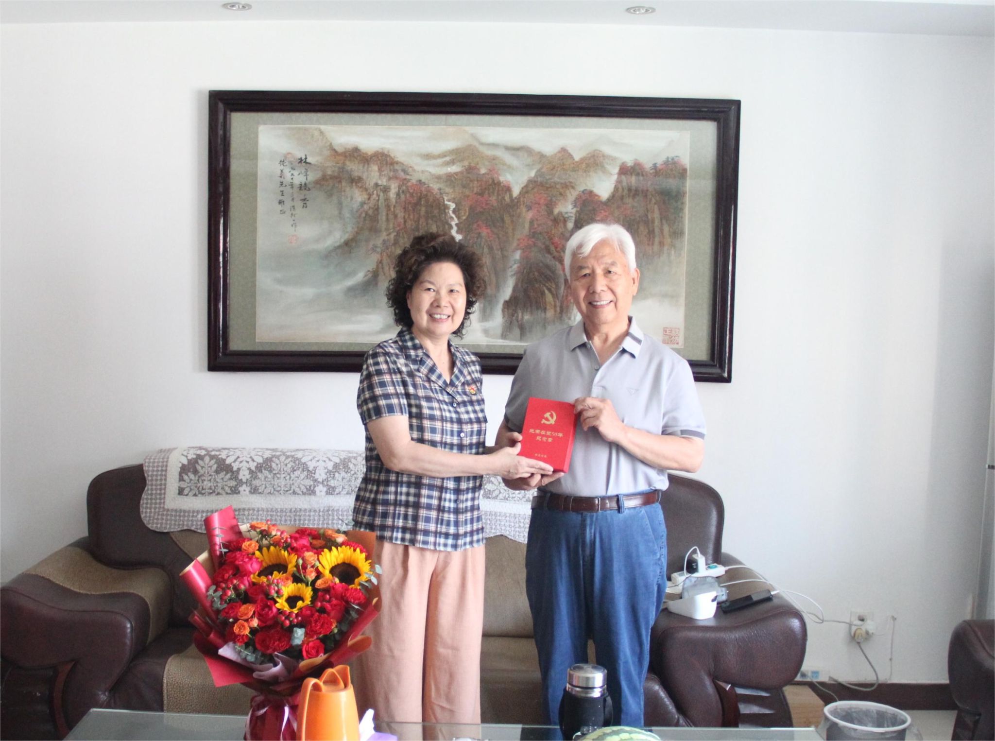 在庆祝中国共产党成立103周年之际,6月29日上午,党委书记周保平带队看望慰问老党员,向他们致以节日的问候和祝福,并为刘纯义、汤翠华等党龄50周年的老党员颁发“光荣在党50年”纪念章。党委组织部和离退休党总支等部门的有关同志陪同看望慰问。