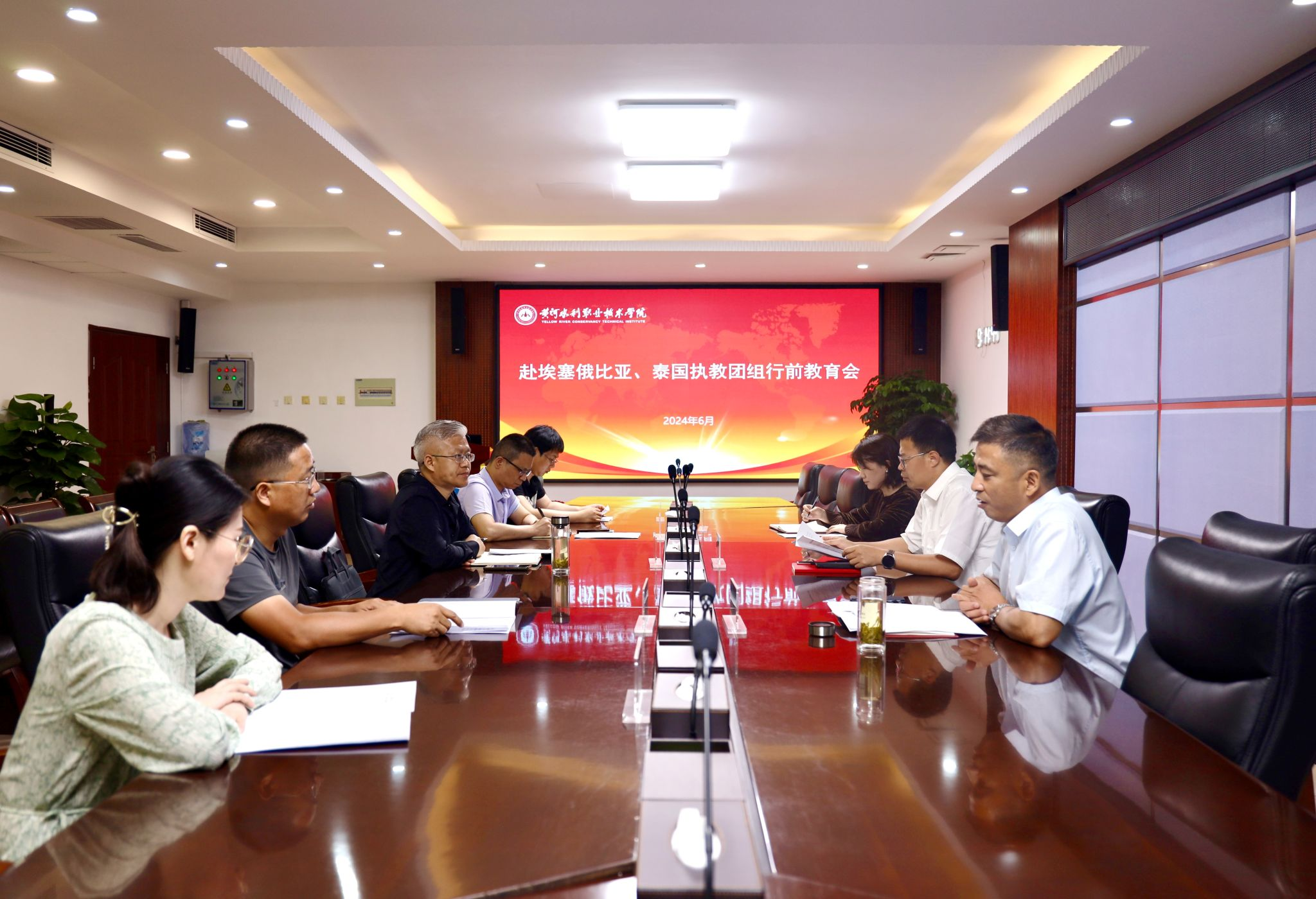 6月5日上午,我校在行政楼第一会议室召开赴埃塞俄比亚、泰国执教团组行前教育会,对近期赴埃塞俄比亚、泰国两个执教团组进行了行前教育培训。校长胡昊、副校长菅浩然出席会议,相关部门及教学单位负责同志参加会议。