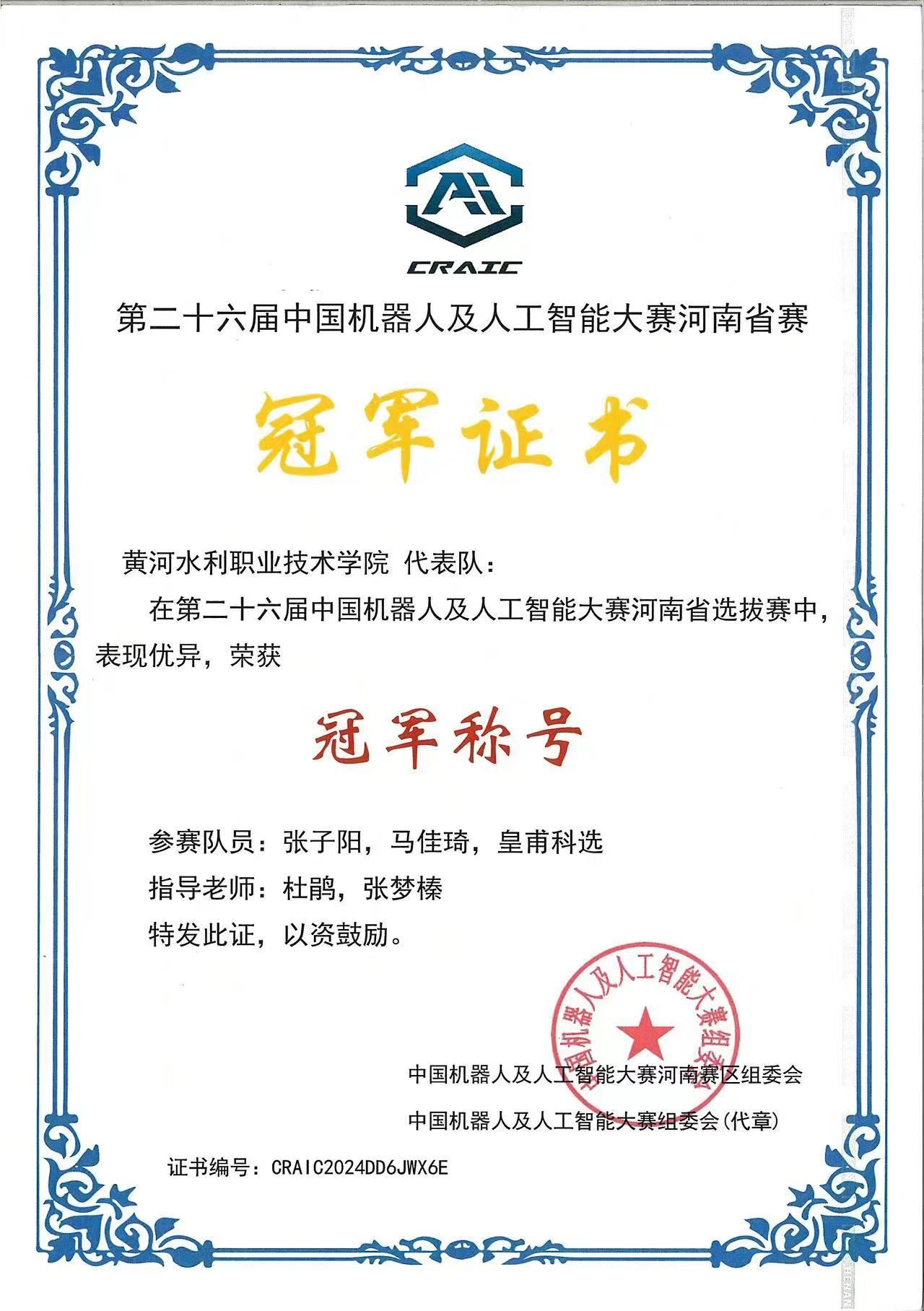 6月1日,由中国机器人及人工智能大赛河南赛区组委会、河南大学主办的第二十六届中国机器人及人工智能大赛在黄河交通学院落下帷幕。经过参赛选手团结协作、顽强拼搏,最终获得一等奖3项、二等奖5项、三等奖3项的优异成绩,共计8支参赛队顺利晋级国赛。获奖团队中,由杜鹃、张梦榛老师指导的人工智能技术应用专业张子阳、马佳琦、皇甫科选学生团队在机器人任务挑战赛(Aelos开源鸿蒙)中获得冠军称号。