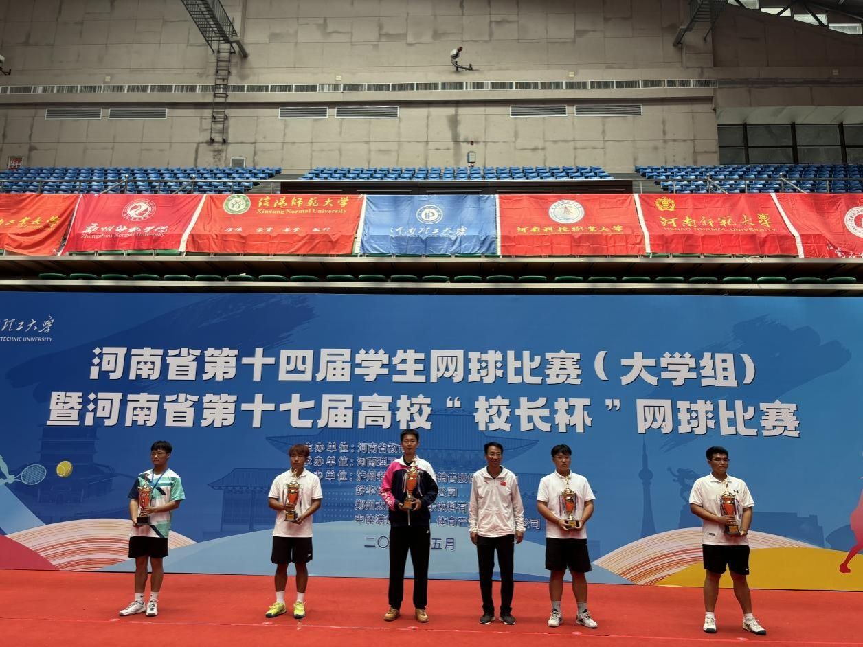 5月26日,河南省第十四届学生网球比赛(大学组)在河南理工大学胜利闭幕,我校网球健儿在历时6天的比赛中充分发扬了黄河水院人“特别能吃苦,特别能战斗,特别能打硬仗”精神,取得专科甲组男子团体冠军、男子单打冠、亚军、男子双打亚军、女子团体亚军、女子单打亚军、女子双打第四名的历史最好成绩。同时,男子团体成功取得“三连冠”。