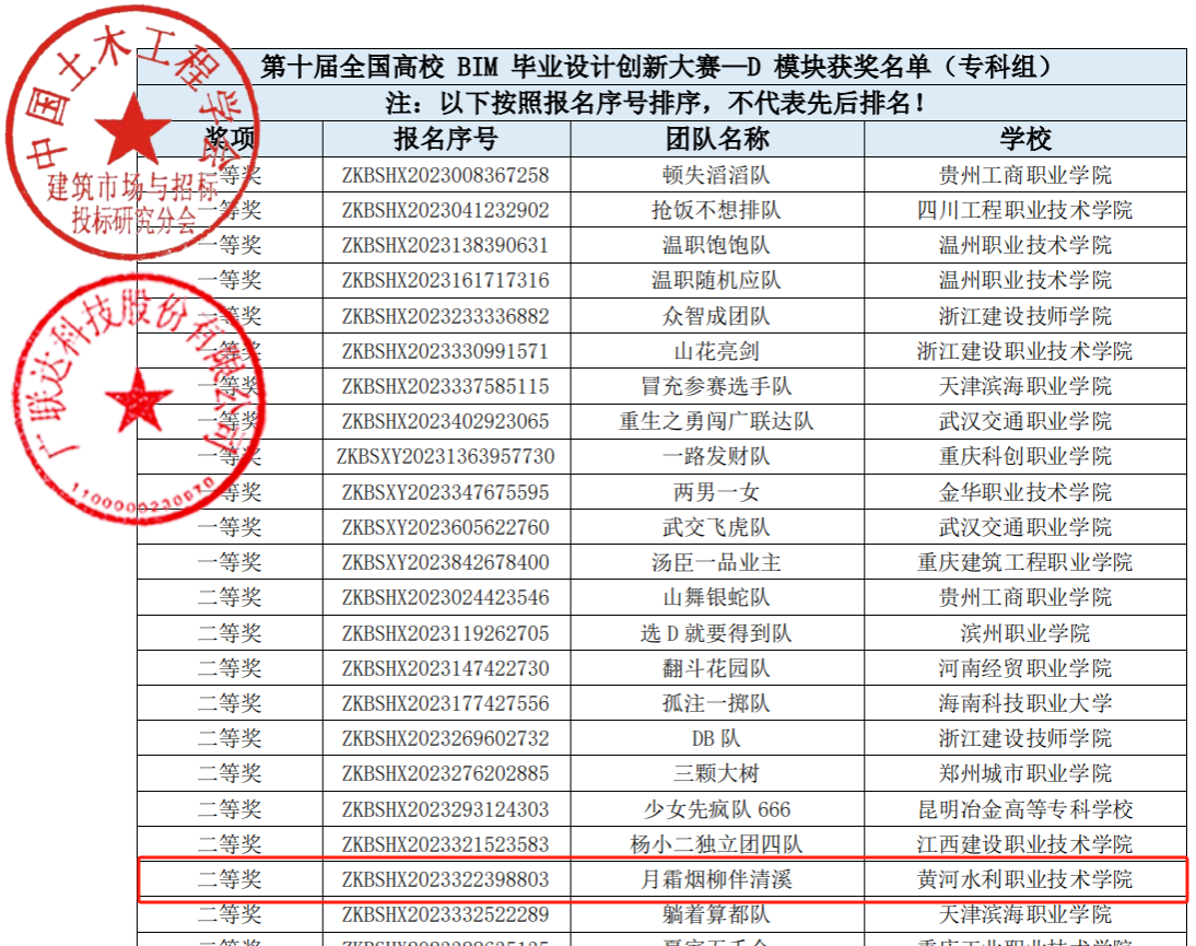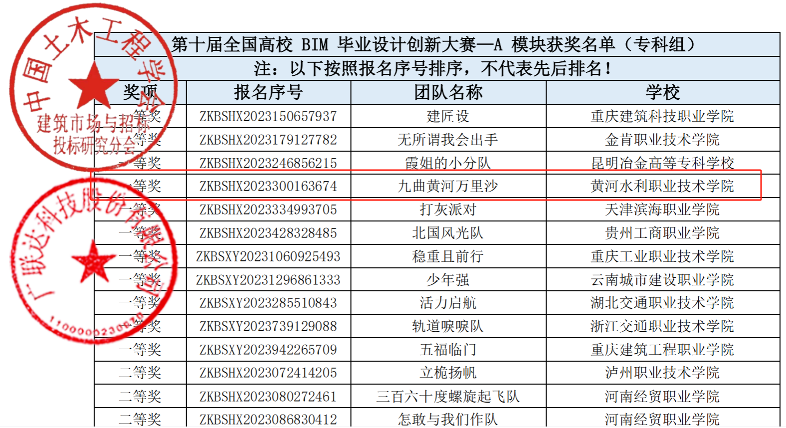 近日,在第十届全国高校BIM毕业设计创新大赛中,我校土木与交通工程学院工程造价专业教师王斌、姚鹏、牛贺洋等指导学生蔡家浩、王玥、蒋博玺、余盼盼等参加A、D、E、H四个模块,获两个一等奖,两个二等奖的好成绩!