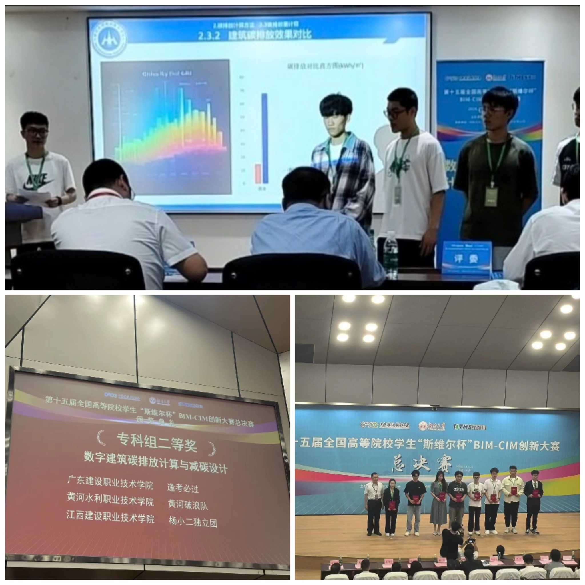 近日,第十五届全国高等院校学生“斯维尔杯”BIM-CIM创新大赛在湖南长沙举行,我校土木与交通工程学院学生冯二勇、杨林凡、袁鹏举、谢龙飞、谨慧超五名同学在数字建筑碳排放计算与减碳设计、绿色建筑BIM应用两个赛项中斩获佳绩,分别获得全国二等奖和三等奖。指导教师张斯琪、孙玉龙、李丹荣获优秀指导教师。