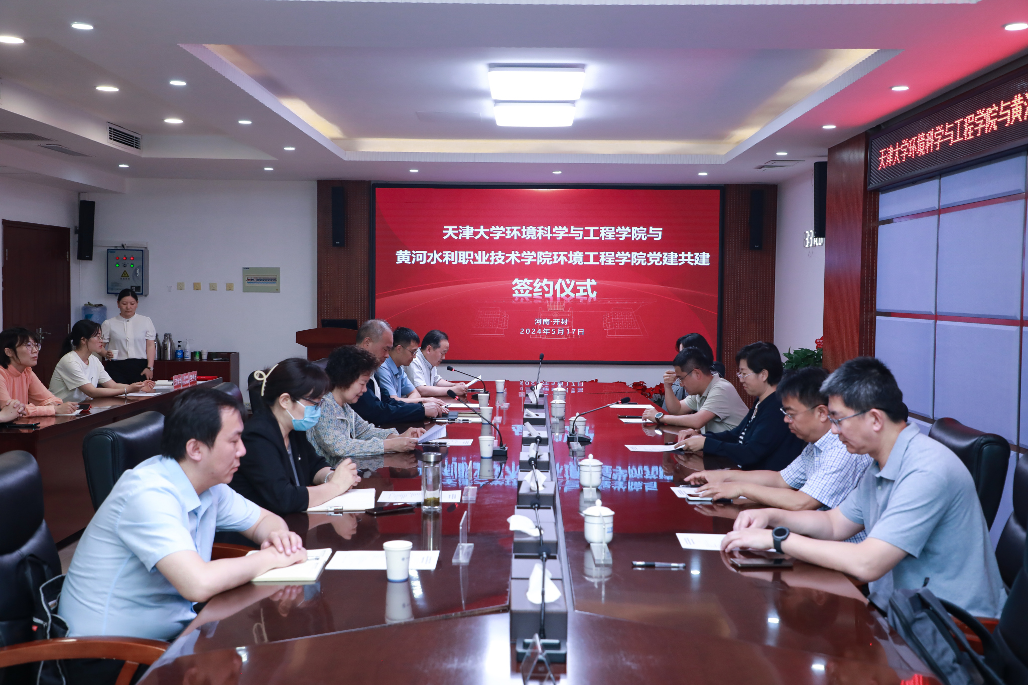 在参会人员的共同见证下,环境工程学院党总支书记冯涛与天津大学环境科学与工程学院党委书记刘洪波共同签署了党建共建协议书。