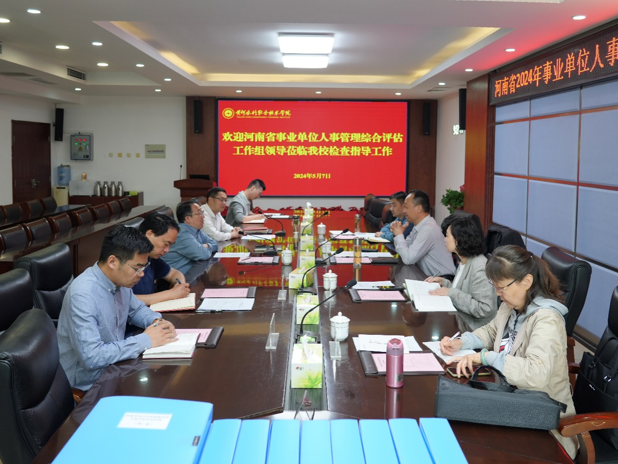 5月7日上午,由省应急管理厅人事处监察专员、一级调研员魏亚军为组长的河南省2024年事业单位人事管理综合评估工作组莅临我校检查指导工作。