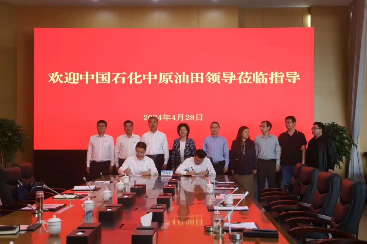 我校校长胡昊和中原石油勘探局党委组织部部长陈东代表双方单位进行了签约。