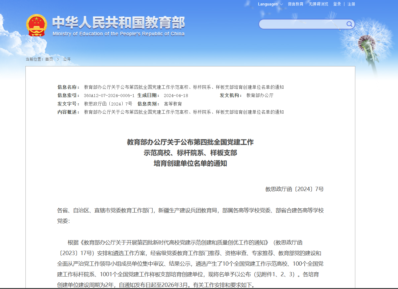 近日,教育部办公厅发布《完美网页版公布第四批全国党建工作示范高校、标杆院系、样板支部培育创建单位名单的通知》,我校商务与管理学院学生商务管理支部入选“全国党建工作样板支部”培育创建单位,是学校入选的第4个全国样板支部。