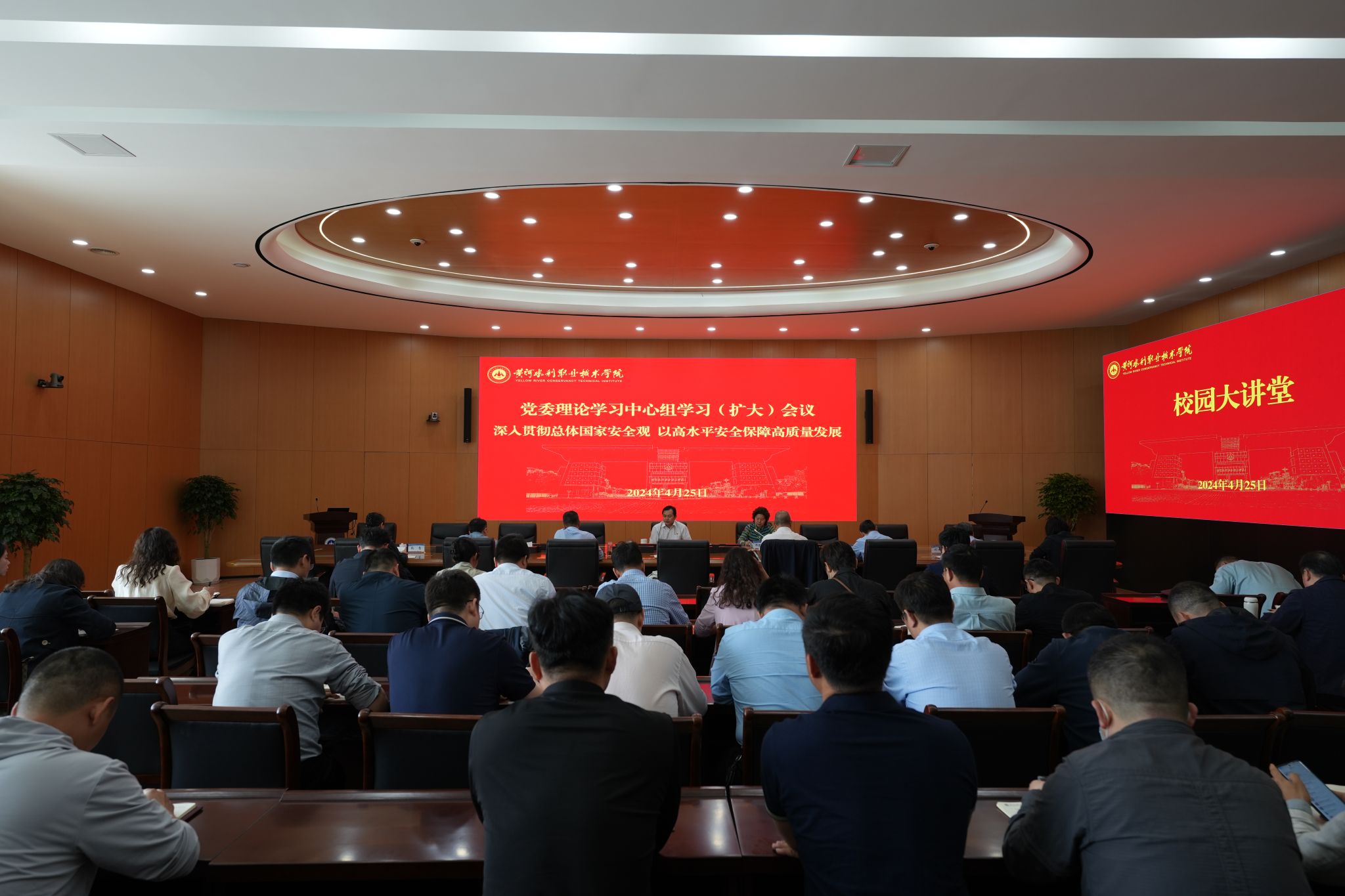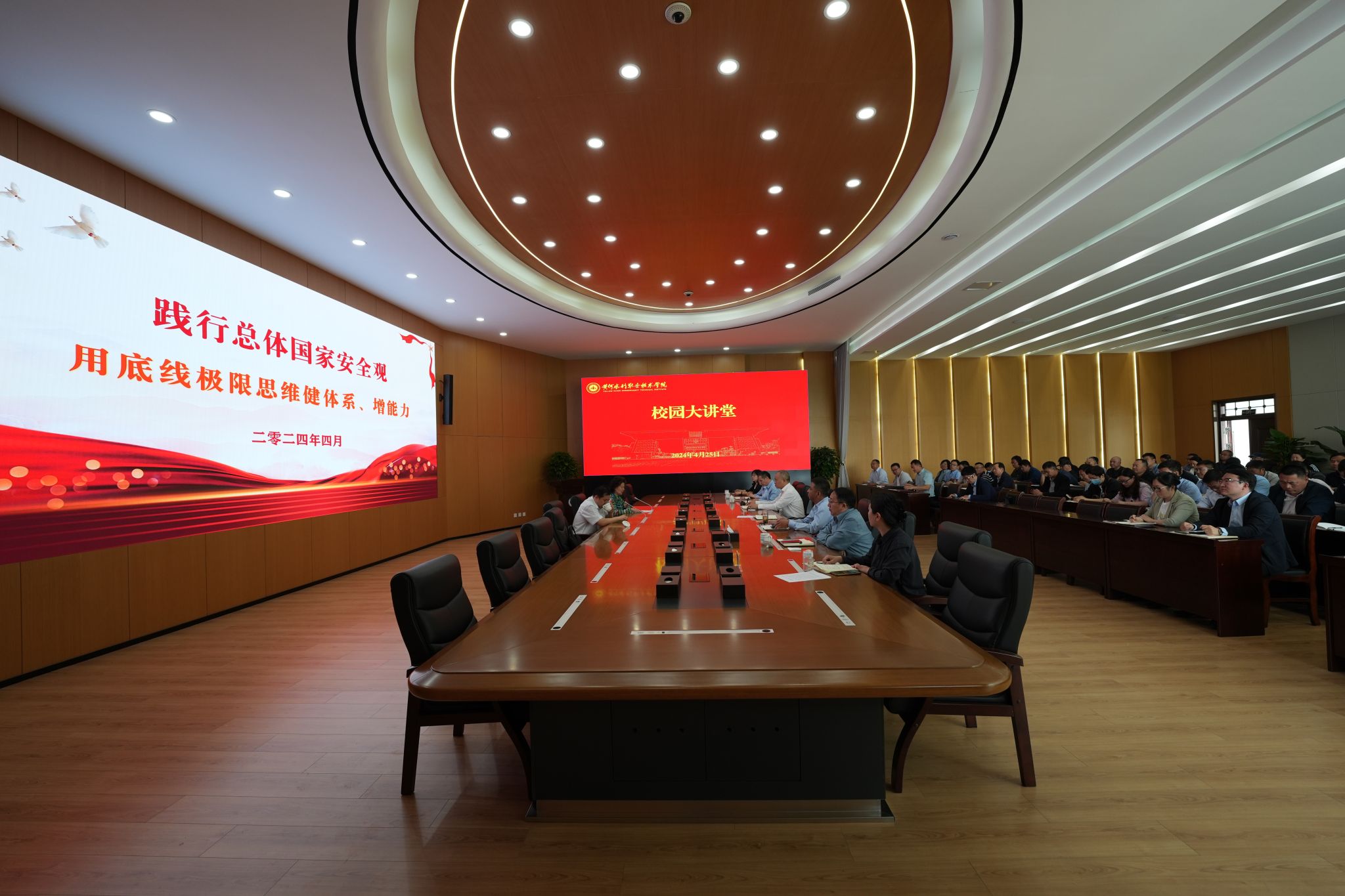 4月25日上午,校党委理论学习中心组学习(扩大)会暨“校园大讲堂”报告会在行政楼第五会议室举行。报告会特邀省委教育领导小组秘书组秘书处二级调研员方治强主讲,以《践行总体国家安全观 用底线极限思维健体系增能力》为题作专题辅导报告。会议由党委书记周保平主持。