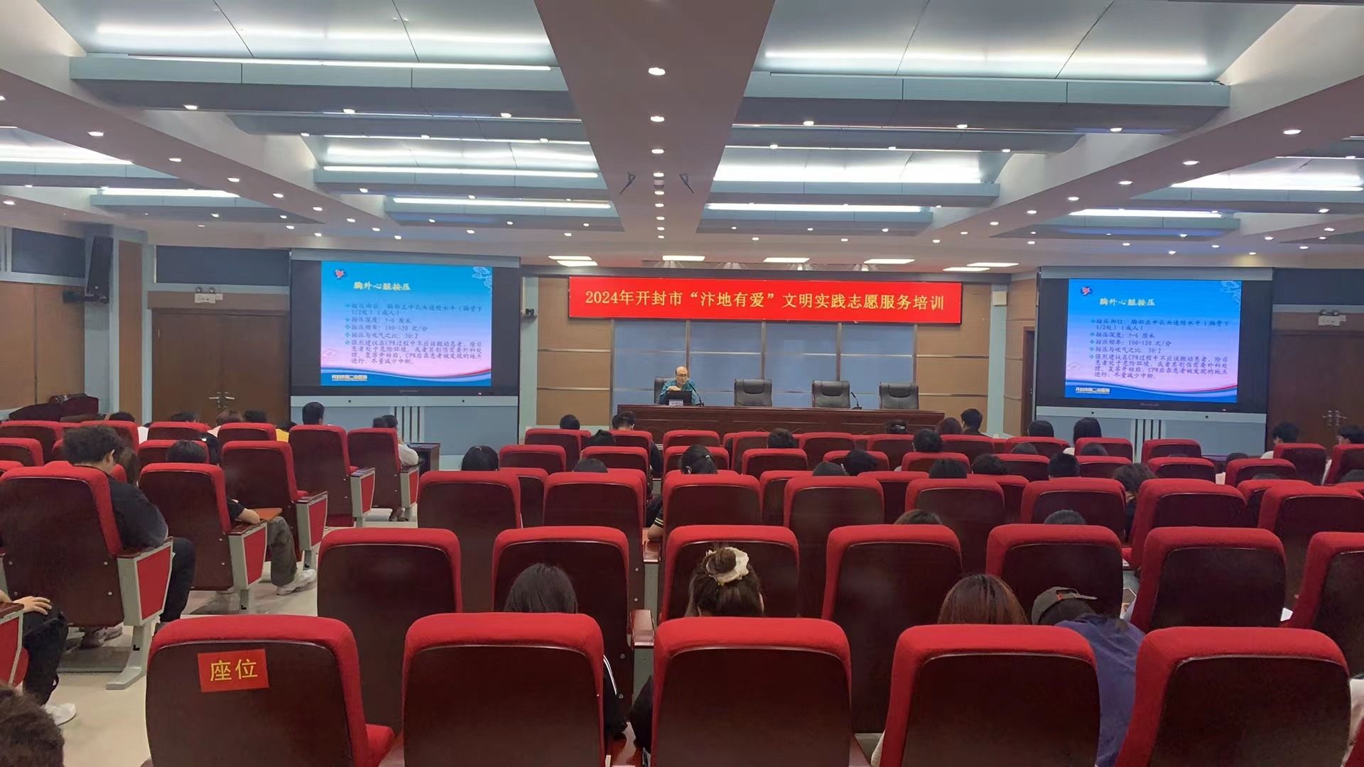 为进一步提升开封市新时代文明实践志愿服务水平,引导广大志愿者弘扬“奉献、友爱、互助、进步”的志愿精神,凝聚文明向善的精神力量,让城市更加有爱、充满温度,4月23日,2024年开封市“汴地有爱”文明实践志愿服务培训在我校举行。