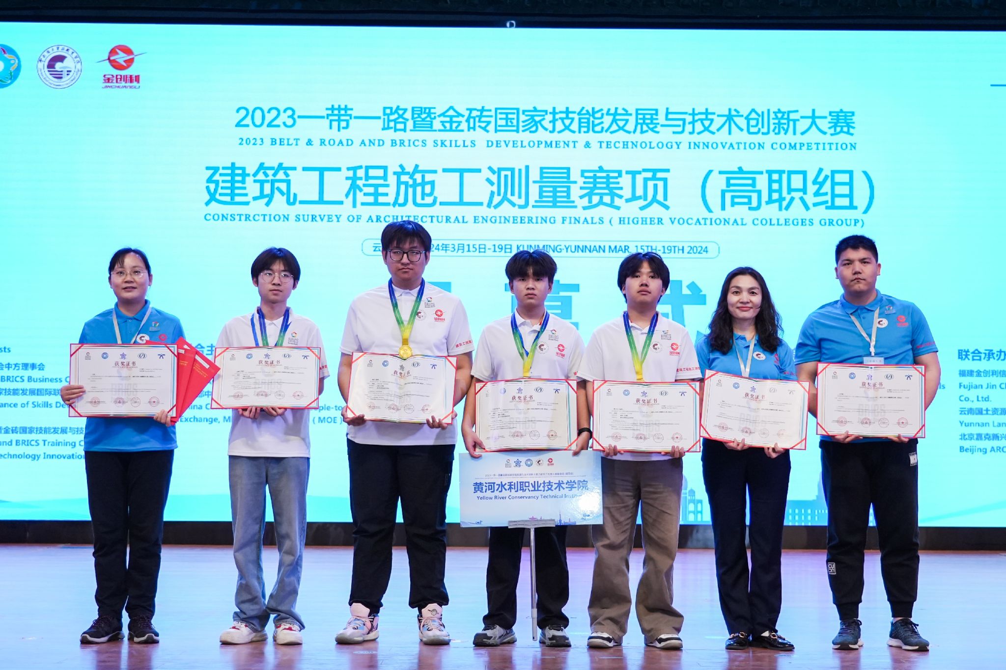 3月16-18日,2023一带一路暨金砖国家技能发展与技术创新大赛建筑工程施工测量赛项国内决赛(高职组)在云南国土资源职业学院举行。来自全国60余所院校、110个参赛队的220名选手同台竞技。经过激烈角逐,来自测绘工程学院地籍测绘2201班的丛挚洋、高政、于金旗、魏少阳4位同学组成的两支参赛队均获一等奖,我校获“最佳组织奖”,何宽、黄飒、孔令惠、石宇峰4位教师荣获“优秀指导教师”称号。