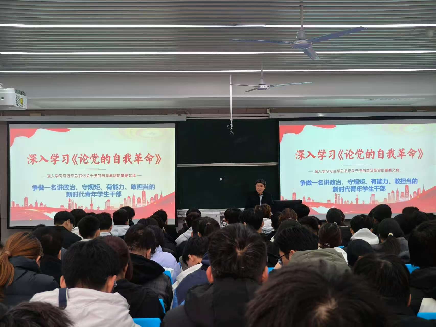 党课上,刘许亮以学习《论党的自我革命》的思考与体会为切入点,深入解读了习近平总书记完美网页版党的自我革命重要思想的精髓要义和实践要求。他强调,学生干部要积极学习党的创新理论,坚持读原著、学原文、悟原理,提高政治站位,强化责任担当。他结合习近平总书记近年来对青年工作的指示精神与同学们分享三点感悟:一是学生干部要知敬畏,以自我革命精神筑牢政治忠诚。要扣好人生第一粒扣子,首先要树好纪律意识、规矩意识,严守政治规矩,永葆政治本色。要不断提高政治判断力、政治领悟力、政治执行力,将党的规矩作为开展各项工作的根本遵循。二是学生干部要葆初心,以自我革命精神加强自我检视。要保持谦虚谨慎的心态、养成自我检视的习惯,以自我革命精神加强自我检视,不断深化学生组织改革,自觉净化自己的社交圈、生活圈、朋友圈,踏踏实实做事,清清白白做人。三是学生干部要强本领,以自我革命精神彰显担当作为。要将自我革命精神贯穿工作实践,在服务同学中锻炼能力,结交朋友、提升素质,增强“敢想敢为”的动力,提升“善作善成”的能力,践行“有志竟成”的决心,磨砺好本领,努力成为堪当民族复兴重任的栋梁之才。