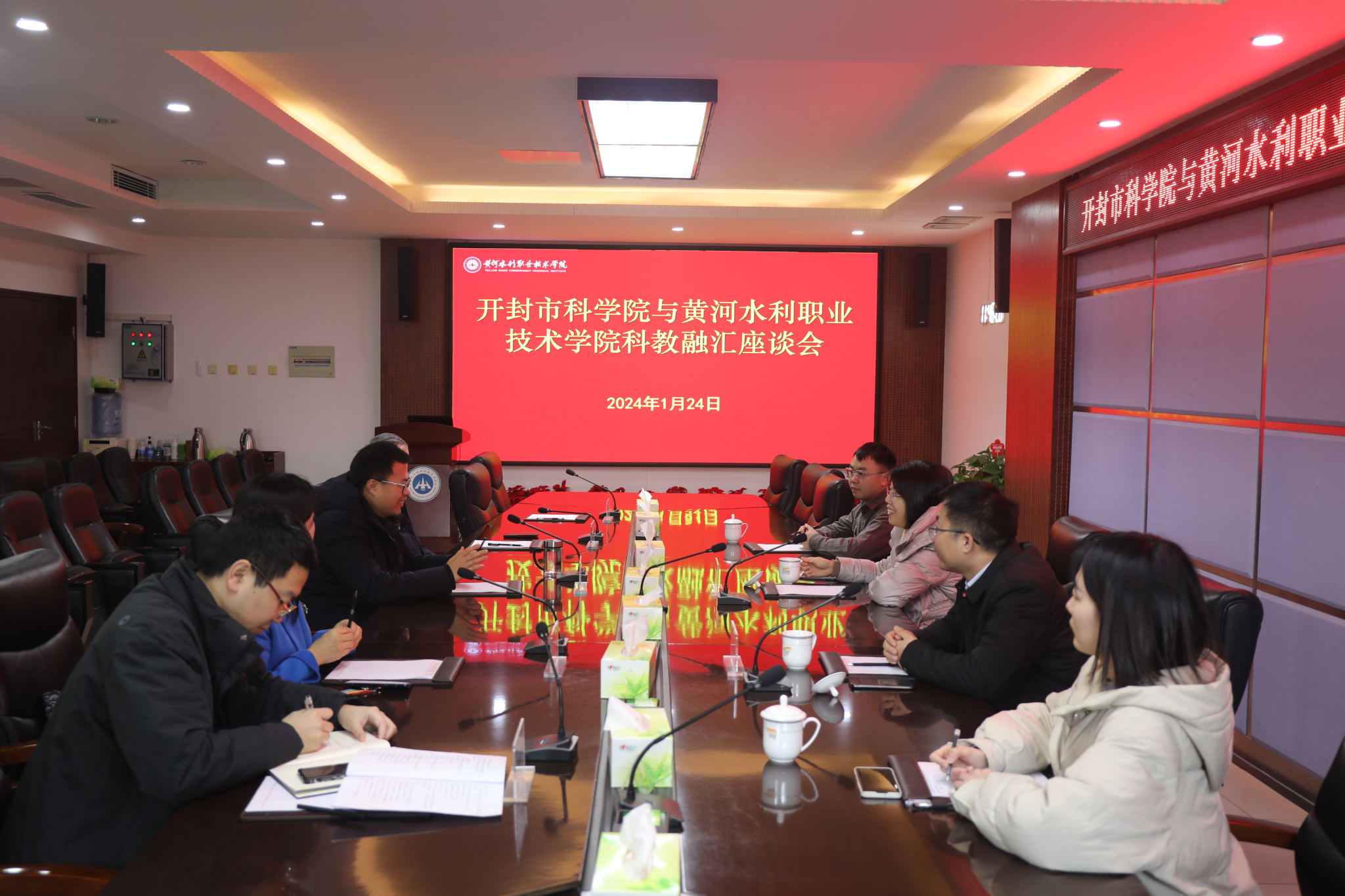 1月24日上午,开封市科学院院长陈勇、副院长刘圣亚等一行四人来我校进行考察交流。我校党委副书记、校长胡昊,副校长刘玉宾,科技处、水利工程学院、土木交通工程学院等单位负责人参加交流。