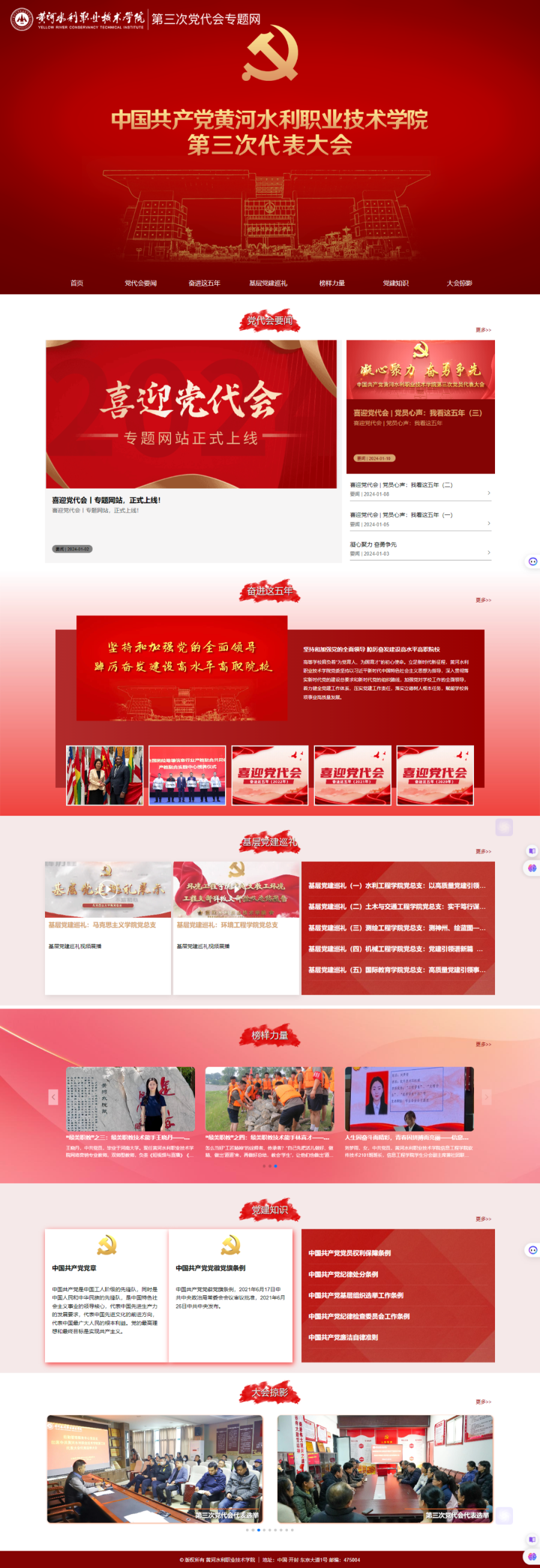 为迎接黄河水利职业技术学院第三次党员代表大会的胜利召开,全面展现我校五年来走过的发展足迹、取得的卓然成就,帮助广大师生了解党代会筹备工作及大会实况,进一步提高认识、统一思想、凝心聚力、振奋精神,1月17日,完美网页版推出“中国共产党黄河水利职业技术学院第三次代表大会专题网站”。