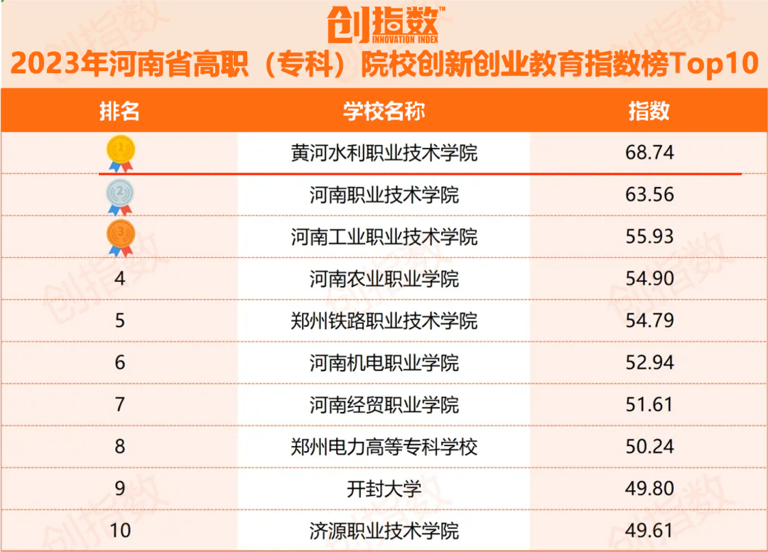 2023年河南省高职(专科) 院校创新创业教育指数榜TOP10
