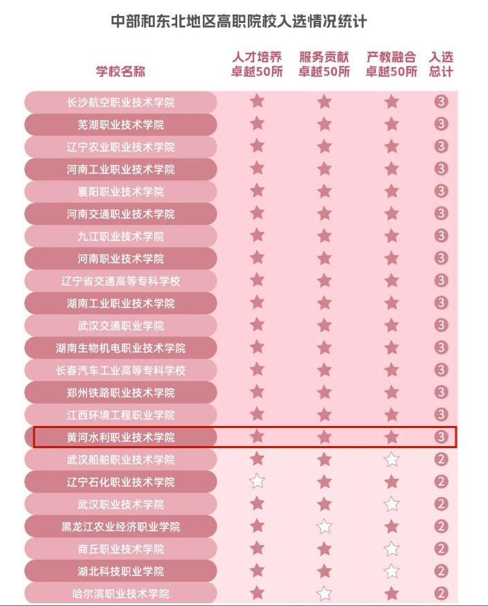 据统计:中部和东北地区共有16所高职院校入选全部三大卓越榜单,22所高职院校入选了其中两个卓越榜单,另有58所高职院校入选了一个卓越榜单。