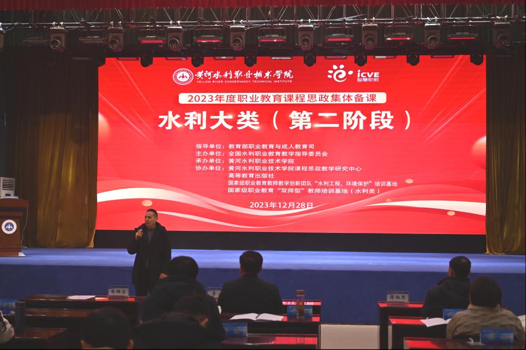 12月28日上午,由全国水利职业教育教学指导委员会主办的2023年职业教育水利大类专业第二阶段课程思政集体备课在我校成功举办。广西水利电力职业技术学院校长李林,广东水利电力职业技术学院副校长蒋伯杰,山东水利职业学院副校长杜守建,黄河水利职业技术学院副校长朱焕立,以及来自全国20余所水利职业院校、国家级职业教育教师教学创新团队培训基地成员单位、国家级职业教育“双师型”教师培训基地成员单位共计2000余人参加了集体备课。集体备课由朱焕立主持,智慧职教对集体备课活动进行了全程直播。