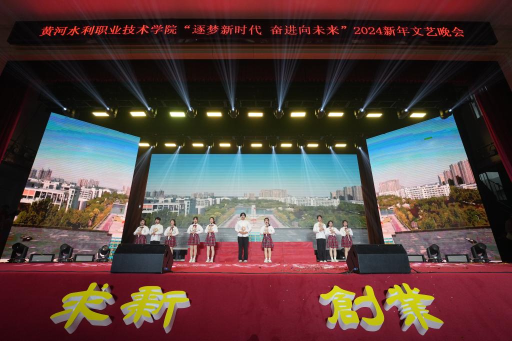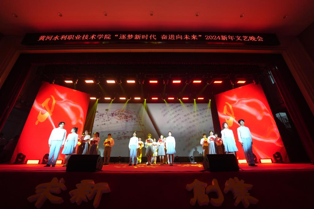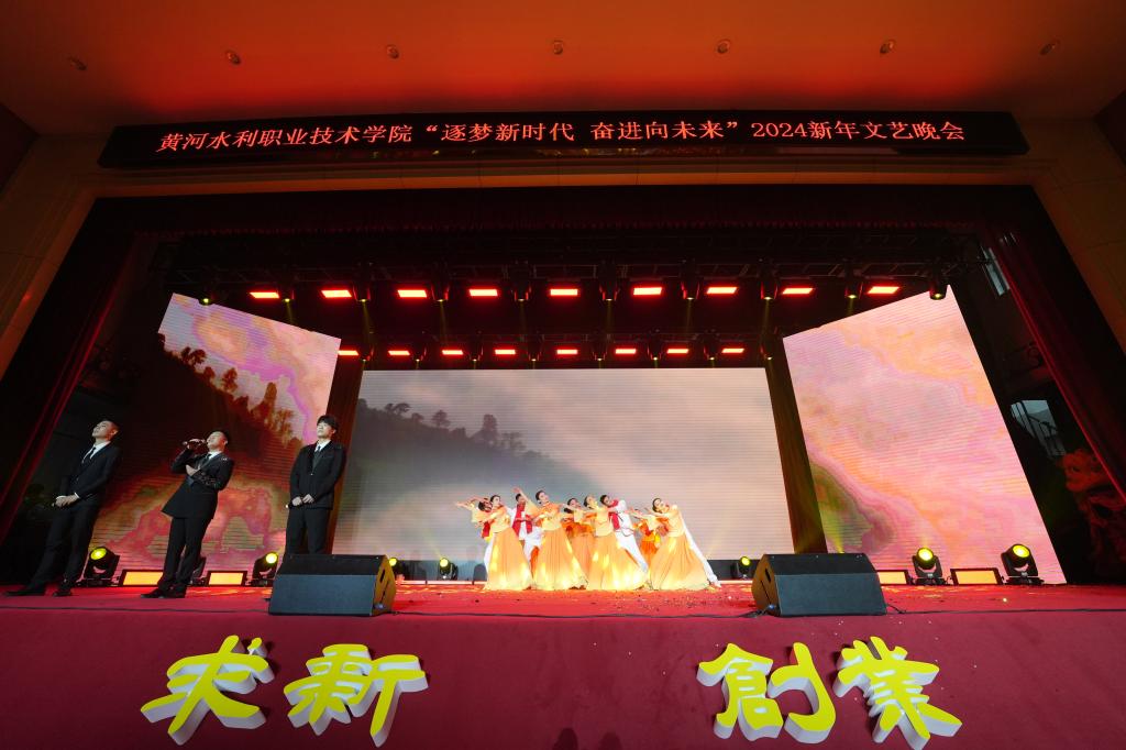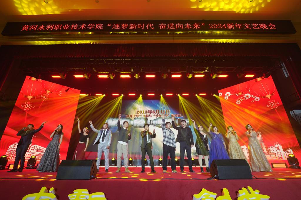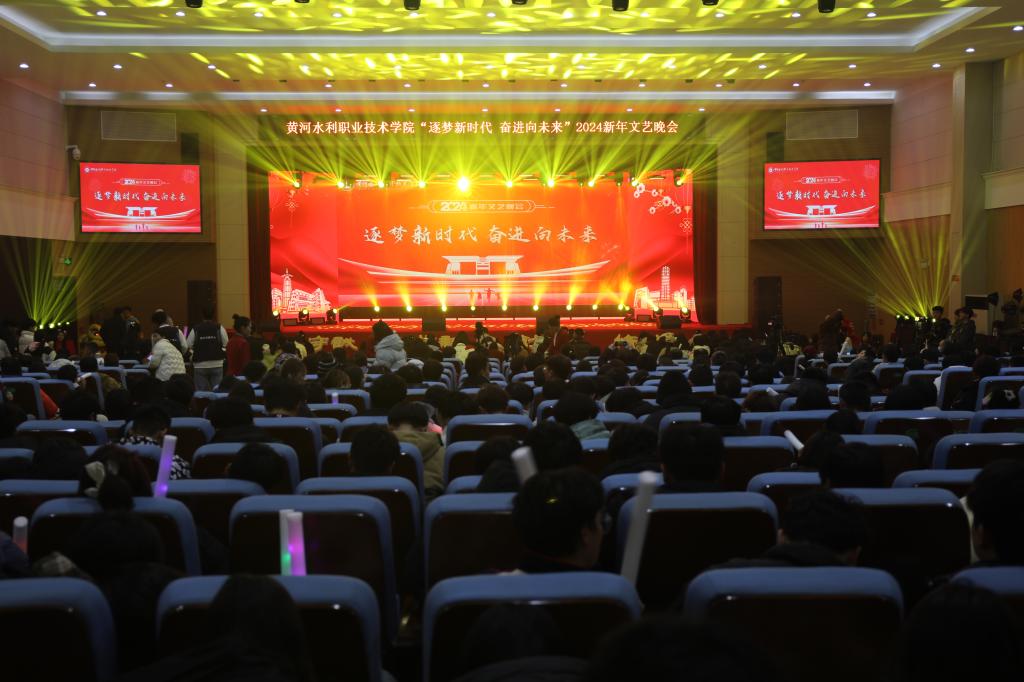 逐梦新时代,奋进向未来。12月29日,由党委宣传部主办,工会、团委、艺术与设计学院共同承办的黄河水院2024年新年文艺晚会在我校大学生活动中心隆重举行。全体校领导与全校近千名师生代表欢聚一堂,现场观看了演出。近万名师生、校友、社会人士观看网络直播,并进行线上互动。