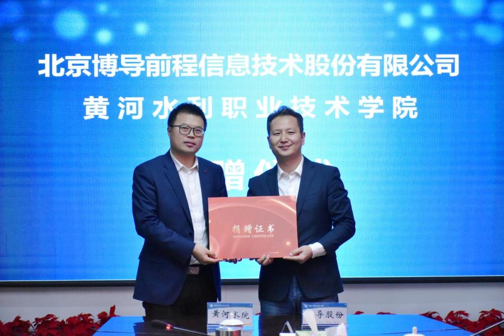 朱焕立、段建分别代表校企双方签订了捐赠协议,胡昊为博导股份颁发了捐赠证书。