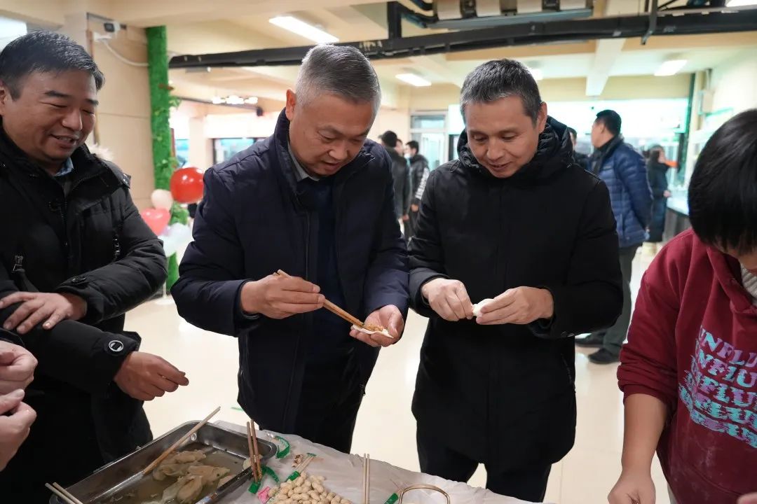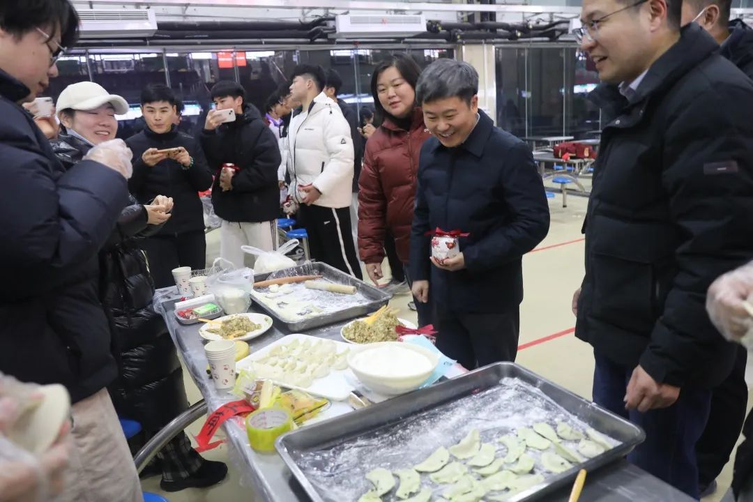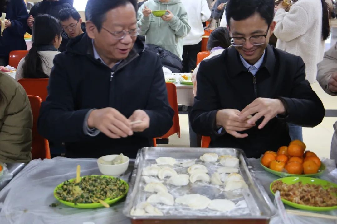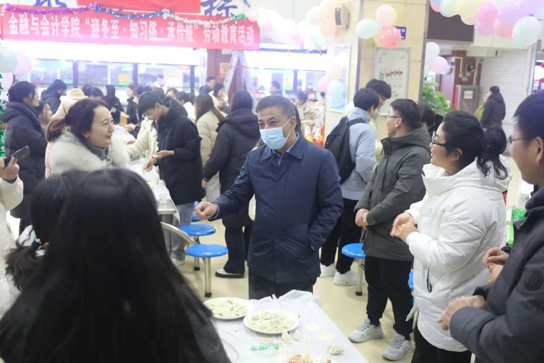 弘扬传统迎冬至,饺香四溢暖心田。冬至当天吃饺子是中国北方的传统习俗,为大力弘扬中华优秀传统文化,丰富学生的校园文化生活,我校于12月22日举办了“迎冬至、包饺子”我陪学生过冬至活动。校党委书记周保平带领在校校领导班子成员,在党政办公室、党委宣传部、学生工作部、团委、后勤管理服务中心等部门负责人陪同下来到活动现场,与各学院师生聊冬至文化、包暖心饺子,共同欢度冬至。