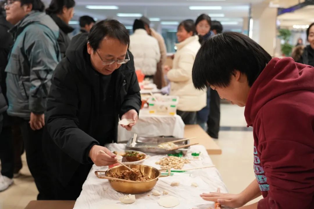 活动中,广大师生热情高涨,积极参与,气氛热闹和谐,欢声笑语不断。一个个小小的饺子,“包”住了浓浓的情谊。大家纷纷展示了自己的拿手绝活,漂亮又独具个性的饺子很快就摆满了一个个盘子。当热气腾腾的饺子端上桌,浓浓的饺子香,获得了大家的一片赞誉。
