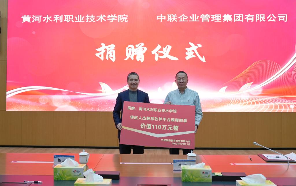 12月21日,中联企业管理集团有限公司(以下简称“中联集团”)向我校捐赠专业平台课程,并签约共建数智财经产业学院,活动仪式在行政楼三楼学术报告厅举行。中联集团常务副总裁杨尚想、运营总监侯刘成,中联集团教育科技有限公司执行总裁赵志刚、河南省总经理赵飞鹏、合作总监王明明、运营经理龚广义,我校副校长朱焕立出席仪式,教务处、金融与会计学院相关负责人及教师代表参加仪式。仪式由金融与会计学院党总支书记胡晓慧主持。