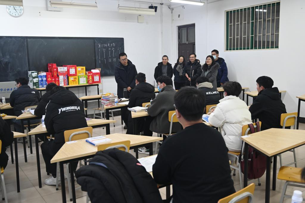胡昊一行先后深入到5号教学楼水利水电工程2001班、测绘工程2001班和机械设计制造及其自动化2001班专用教室,了解本科生考研复习情况,为他们鼓劲加油,并为考研学生送去了牛奶、面包等慰问品。
