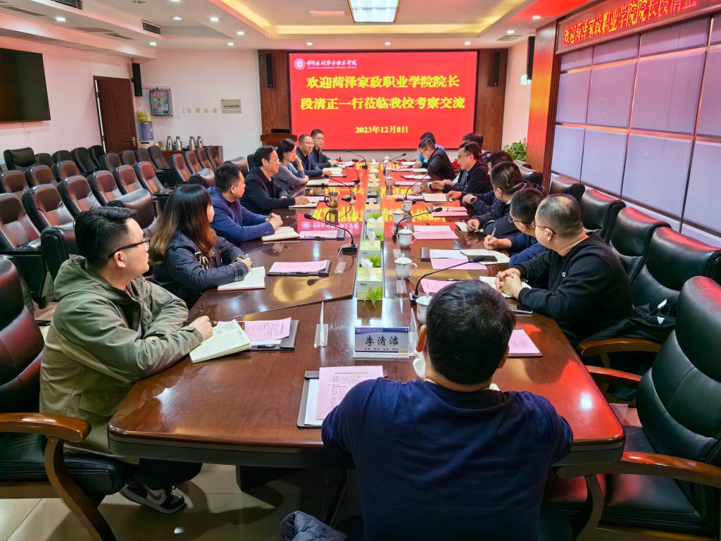 12月8日下午,菏泽家政职业学院党委副书记、校长段清正,党委委员、副校长鲁彬一行11人到我校考察交流信息化建设工作。我校副校长刘守义及党政办公室、科技处、学生工作部、后勤管理服务中心、信息化管理办公室等部门负责人参加座谈。座谈会在我校行政楼第一会议室召开。