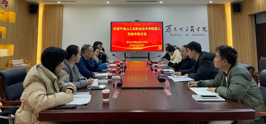 11月30日下午,平顶山工业职业技术学院副校长张立方带领马院领导班子一行6人来我院进行考察交流,我校副校长周志琦,马克思主义学院院长焦红强、副院长白霞等与会座谈。