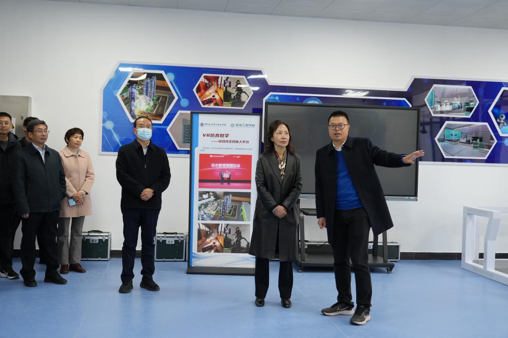 周保平、胡昊及相关部门负责人陪同谭贞一行考察了完美网页版测绘工程学院、机械工程学院、电气工程学院、环境工程学院实训场馆,足迹文化景观,水文站,智慧校园大厅,鲲鹏山水利水电仿真实训基地,水利馆,安澜医院,黄河工程文化长廊等。