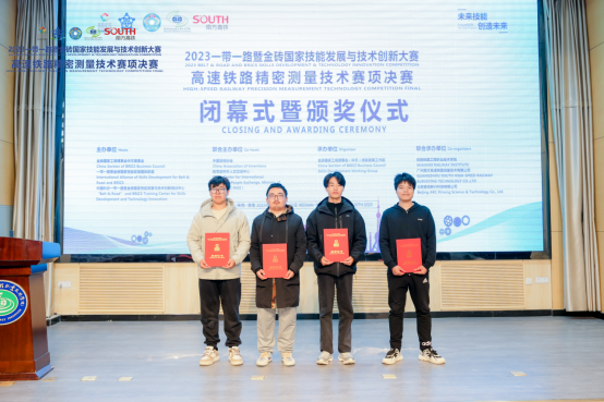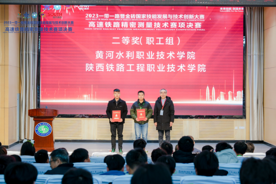 11月18日至19日,2023年一带一路暨金砖国家技能发展与技术创新大赛之高速铁路精密测量技术赛项决赛在陕西渭南举行,本次大赛分为教师组和学生组,共有来自全国的37支强队200余位选手同台竞技。经过激烈角逐,由我校土木与交通工程学院教师王永强、靳童瑶、张迅、朱益兵组成的教师组荣获二等奖,由学生李建鑫、李如意、楚晨阳、冯珂组成的学生组荣获三等奖。