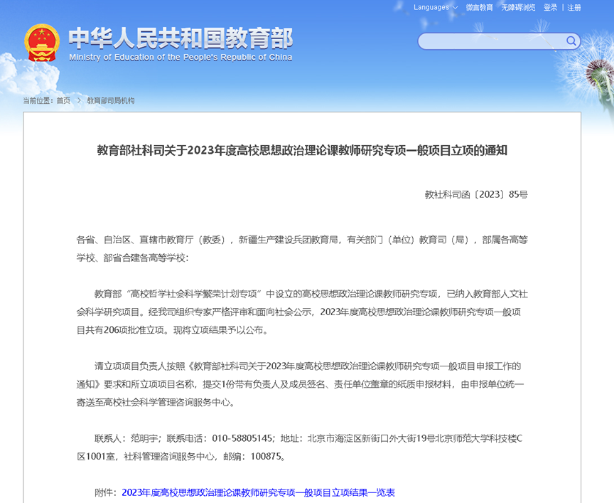 近日,根据《教育部社科司完美网页版2023年度高校思想政治理论课教师研究专项一般项目立项的通知》(教社科司函〔2023〕85号)公布,我校马克思主义学院焦红强博士主持的“领导干部讲高校思政课的实践探索及其经验启示研究”获批立项。这是近年来我校人文社科研究高层次项目立项的重要突破。