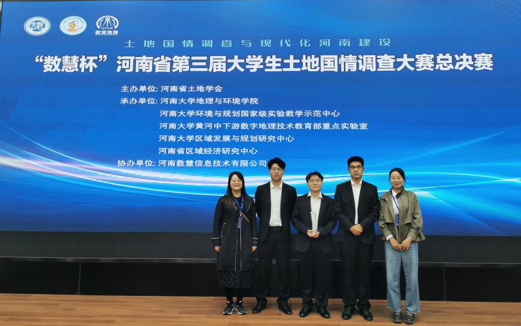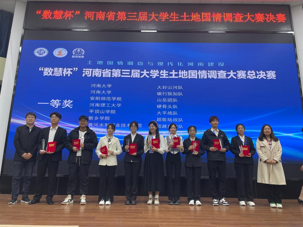 10月22日,由河南省自然资源厅指导,河南省土地学会主办,河南大学承办,河南数慧信息技术有限公司协办的“数慧杯”河南省第三届大学生土地国情调查大赛在河南大学金明校区隆重举行并圆满落幕,我校代表队荣获一等奖和优秀指导教师奖。