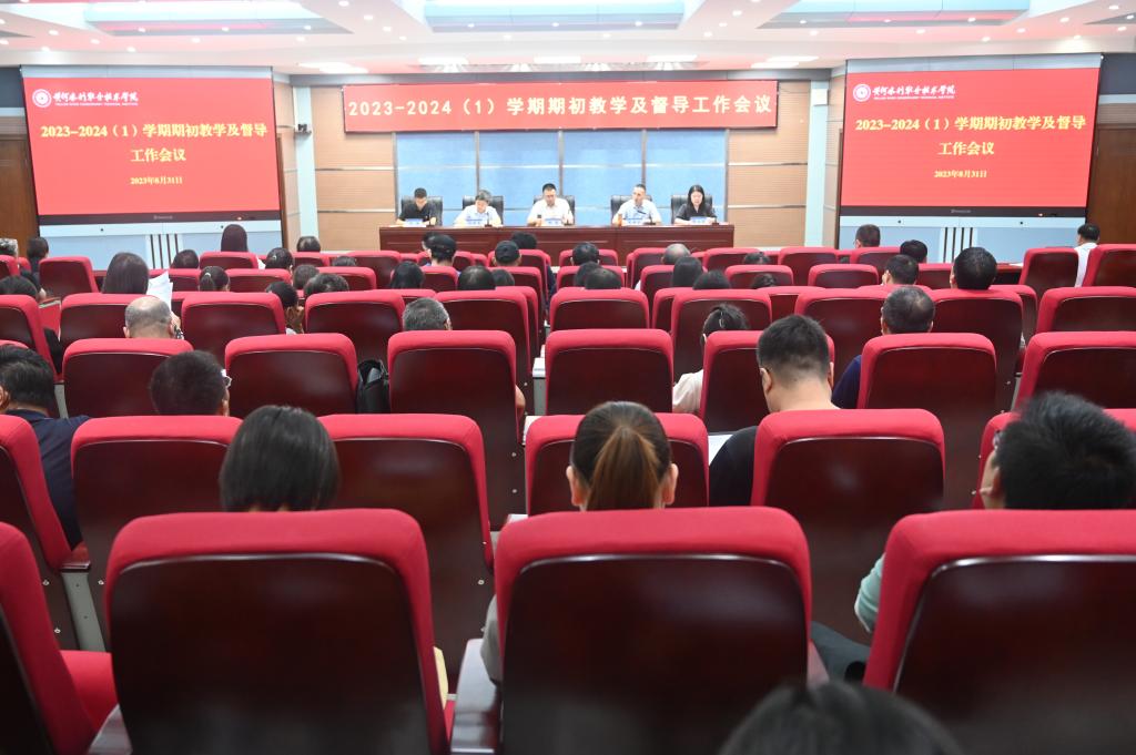 8月31日下午,我校在3号实训馆学术报告厅召开期初教学与督导工作会,校党委副书记、校长胡昊,副校长朱焕立,纪委书记刘许亮出席会议。教务处、教育教学督导室及15个院(部)相关负责人,各办公室主任、基层教学组织负责人、专业带头人、督导专家等参会,会议由朱焕立主持。