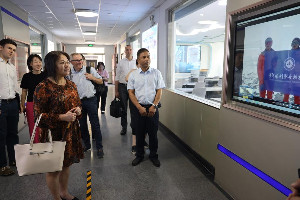 访问期间,代表团参观了我校8号实训馆环境工程学院实训室、测绘工程学院实训室、“足迹”文化景观、智慧校园服务大厅和鲲鹏山水利水电仿真实训基地。