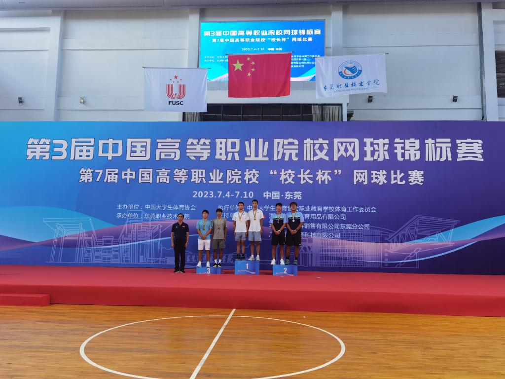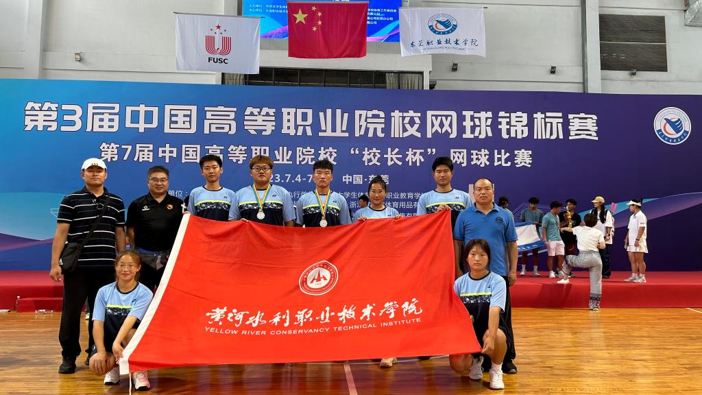 7月4日—9日,第三届中国高等职业院校网球锦标赛暨第七届中国高等职业院校“校长杯”网球比赛在东莞职业技术学院举行。来自全国各地40余所高等职业院校的500余名运动员参见本届比赛。我校网球队参赛队员在赛场上团结协作,力争上游,不畏强手,顽强拼搏,最终夺得男子双打亚军,充分展示了黄河水院人“特别能吃苦,特别能战斗,特别能打硬仗”的优良作风,为我校赢得了荣誉。来自机械工程学院的校网球队员崔钰同学被评为“优秀运动员”。