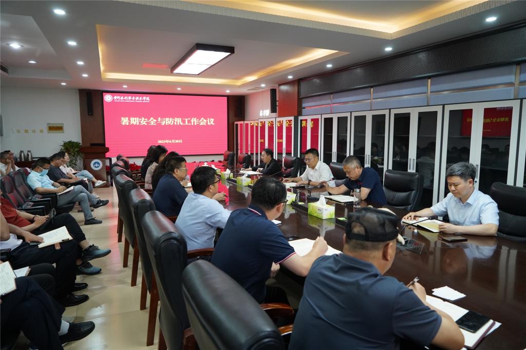 为做好暑期安全稳定和防汛工作,确保校园安全稳定。6月30日下午,我校在行政楼第一会议室召开了暑期安全与防汛工作会议,党委副书记、校长胡昊,副校长刘玉宾、周志琦,纪委书记刘许亮出席会议。党政办公室、纪委、学生工作部、保卫部、教务处、基本建设办公室、后勤管理服务中心、资产经营管理中心、各学院党政负责人及相关人员参加会议。