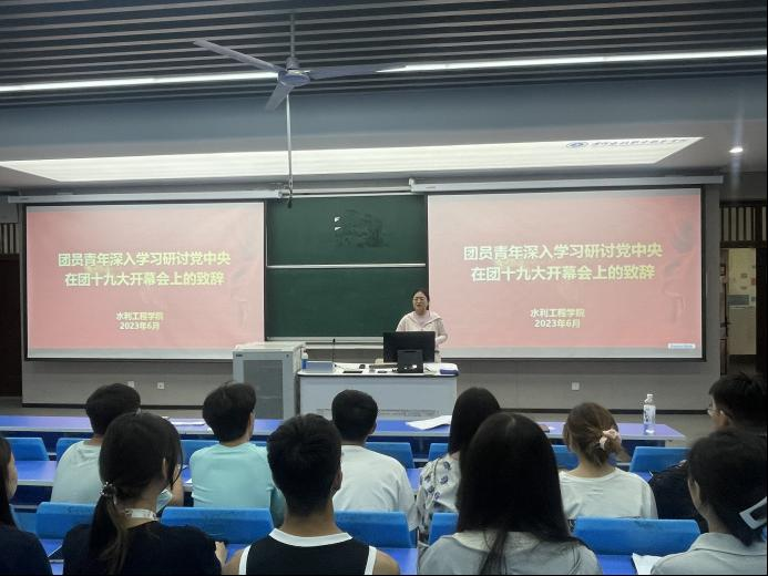 6月19日,中国共产主义青年团第十九次全国代表大会在北京隆重开幕。习近平、赵乐际、王沪宁、丁薛祥、李希等党和国家领导人到会祝贺,蔡奇代表党中央致词。6月21日,我校各级团组织在青年之家、各学院会议室召开党中央在中国共产主义青年团第十九次全国代表大会上的致词学习研讨会。各级团干部、学生干部、团员青年参加会议。